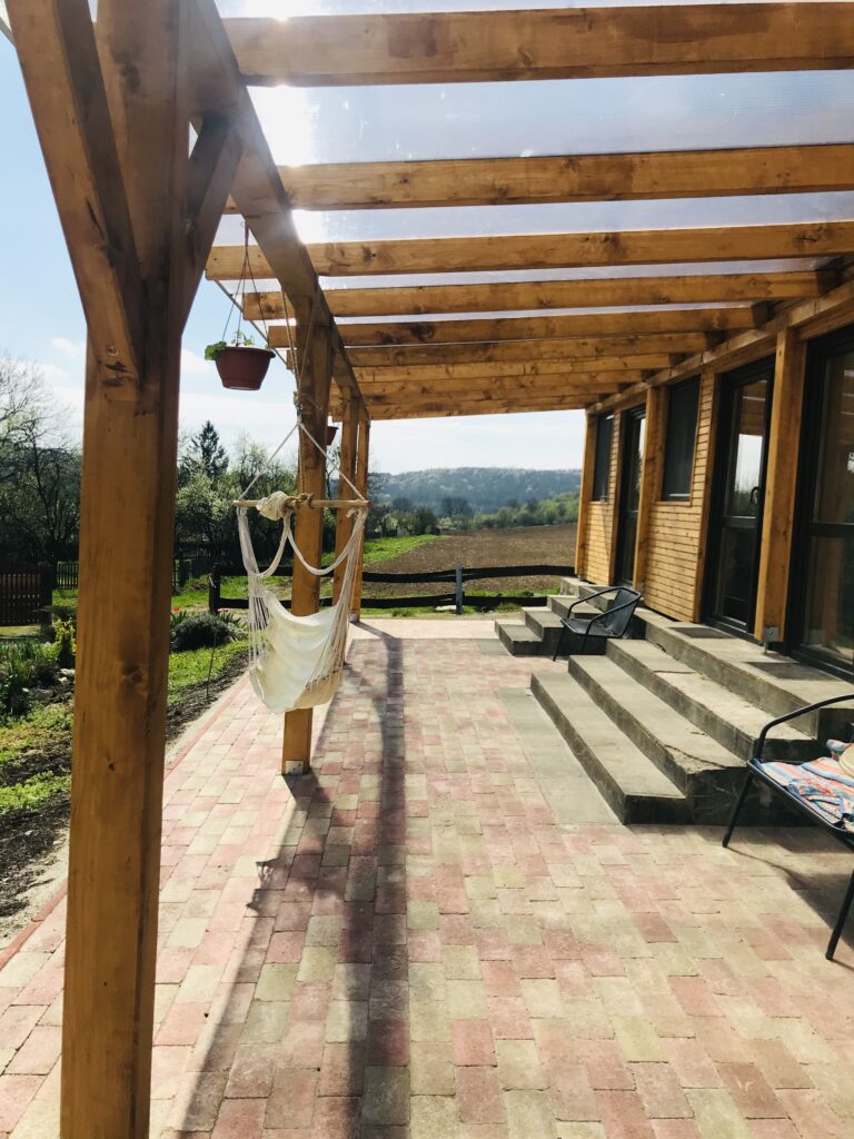 A vendégházunk a falu legvégén, szomszédmentes birtokon található.