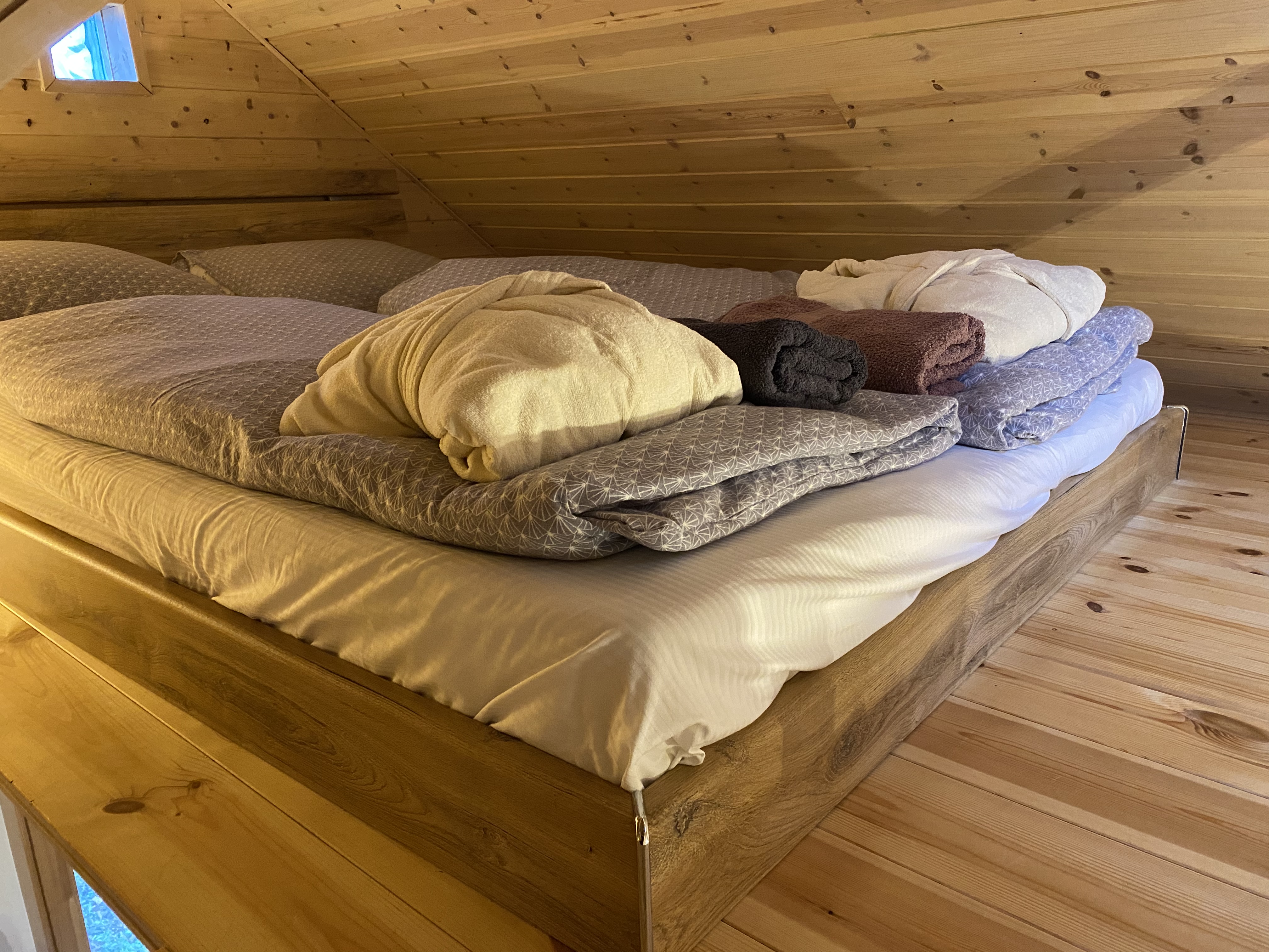 Kisházunk maximum 4-6 fő részére biztosít kényelmes pihenést, kikapcsolódást. A teraszról belépve a házikóba, egy klímás légtérben található a konyha és a nappali, ahol a kihúzható kanapén két személy tud aludni. A két hálórészes galérián egy-egy franciaágy található.