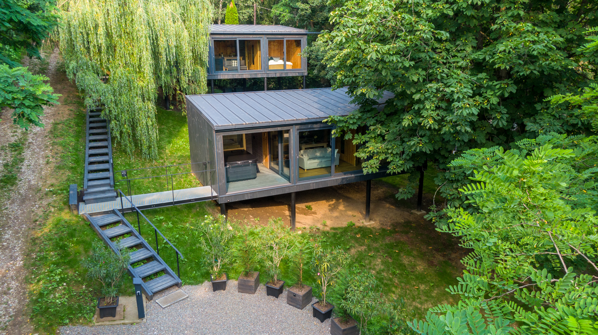 Várunk szeretettel Noszvajon ,csendes nyugodt környezetben az erdőben, a tótól 100m-re luxus lombházainkban.A Blackbox House minden részlete nyugalmat sugároz: a földig érő ablakok szinte behozzák a természetet a szobákba.A hangulatos, saját jakuzzival és szaunával rendelkező lakosztály megkoronázza a felejthetetlen pihenést.