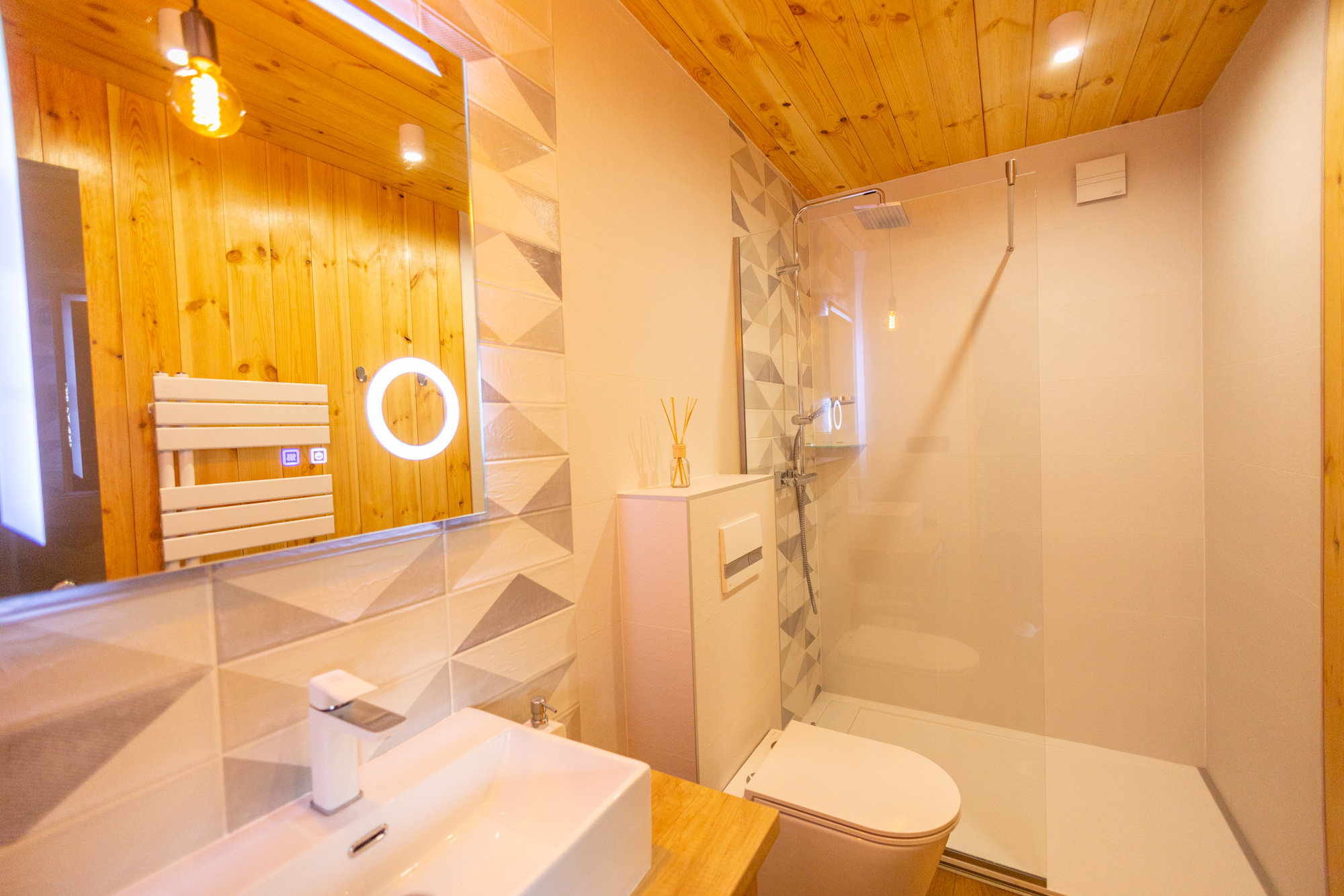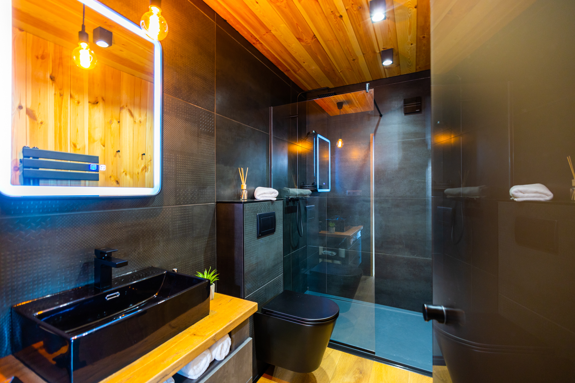 A prémium vendégházban puha köntösökkel, naprolóval, padlófűtéssel és légkondicionálóval gondoskodunk arról, hogy a klímát is tökéletesnek érezd.