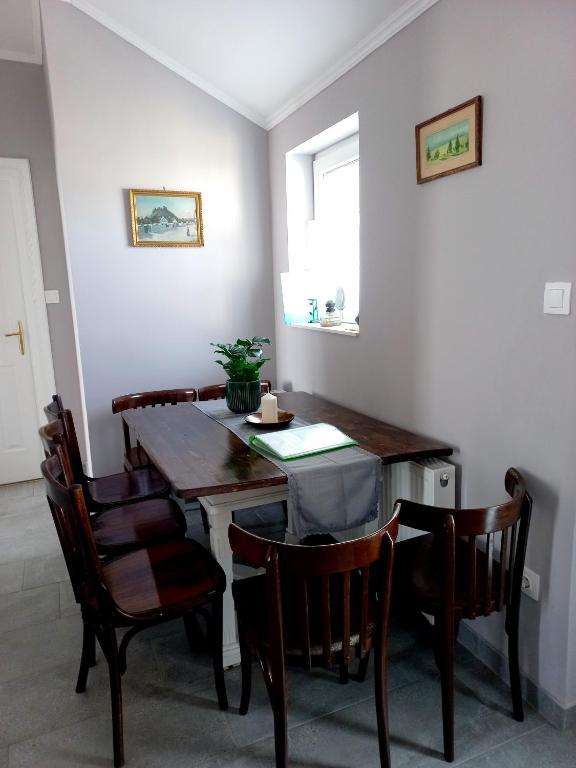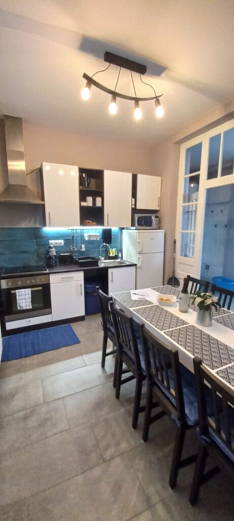 ❤ teljesen felszerelt konyha 9 fős étkezővel (sütő, főzőlap, hűtő mélyhűtővel, mikro, kenyérpirító, mosogatógép, kávéfőző, vízforraló, teljes edényzet, kávé és tea bekészítés)