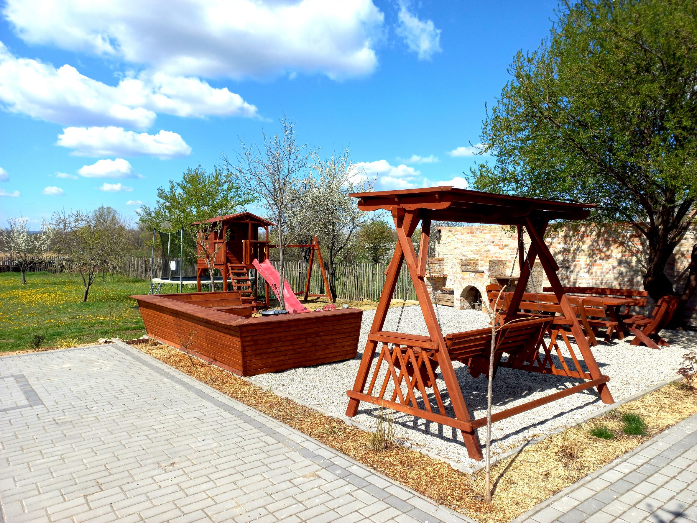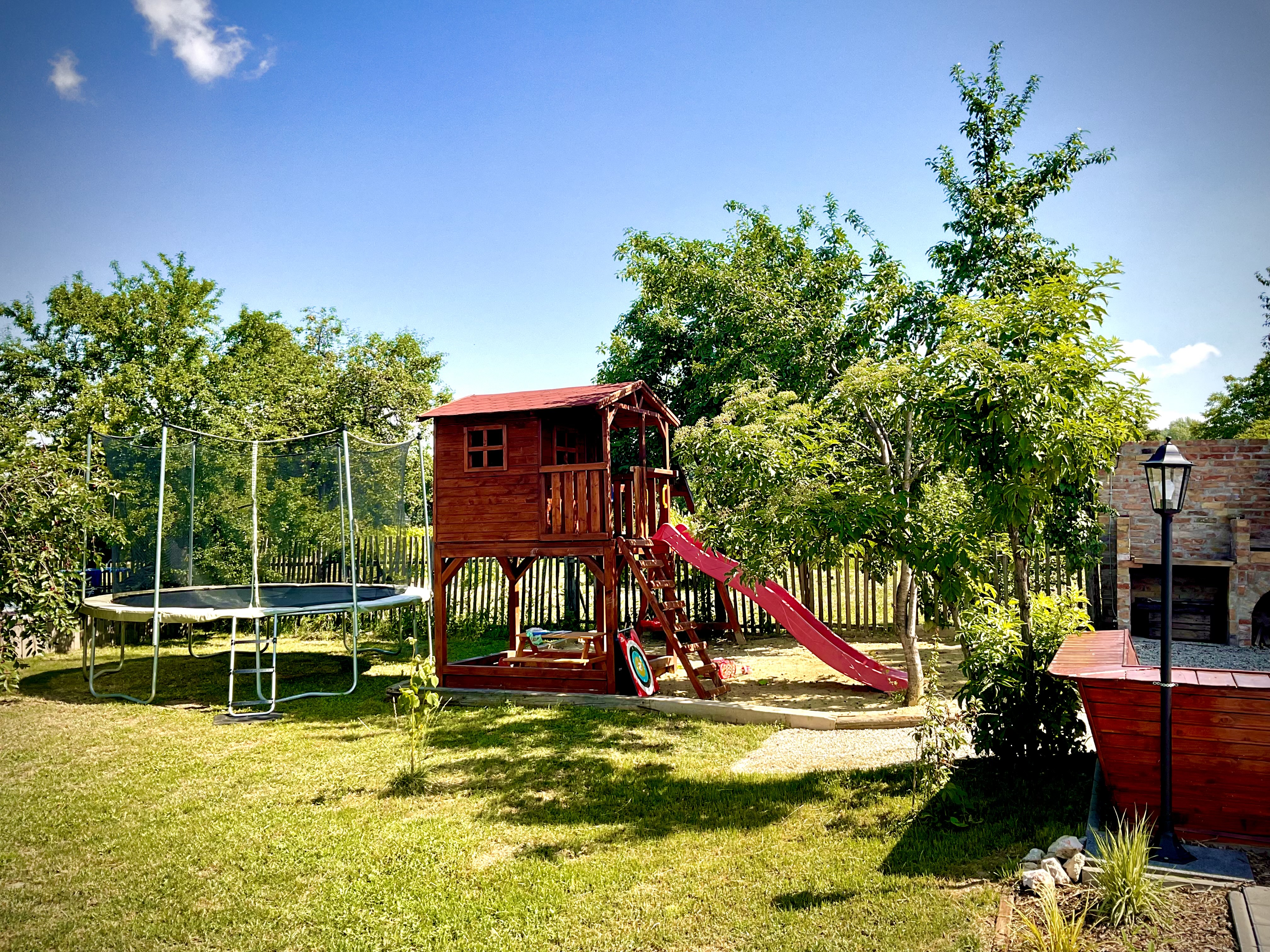 ❤ saját játszótér óriás homokozóval, csúszdával, hintával, mászókával és egy 4 méteres trambulinnal