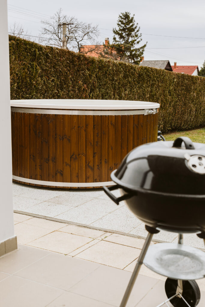 A házhoz saját, zárt udvar, bográcsozási és grillezési lehetőség, valamint fűtött, hidromasszázs funkcióval ellátott (nem sós vízzel működő) dézsafürdő tartozik.