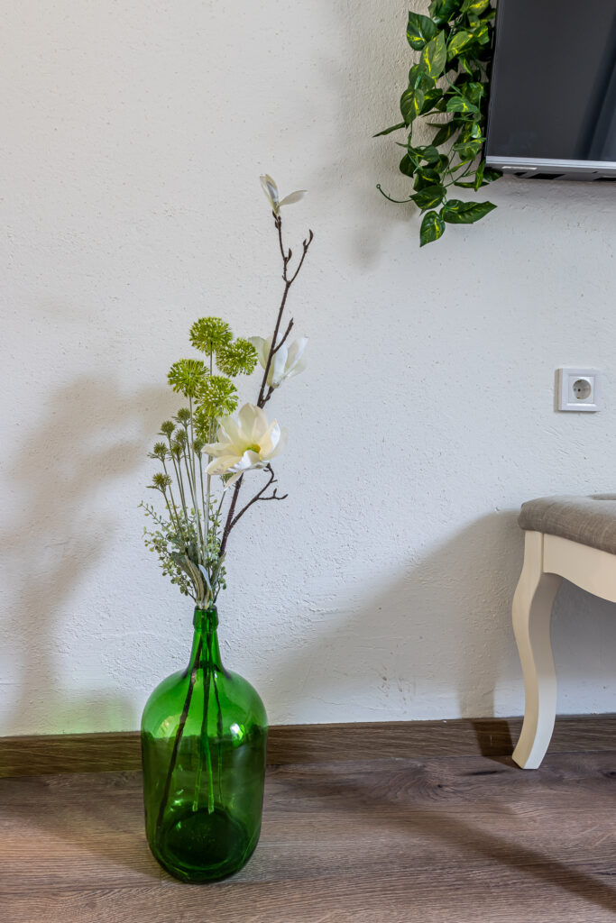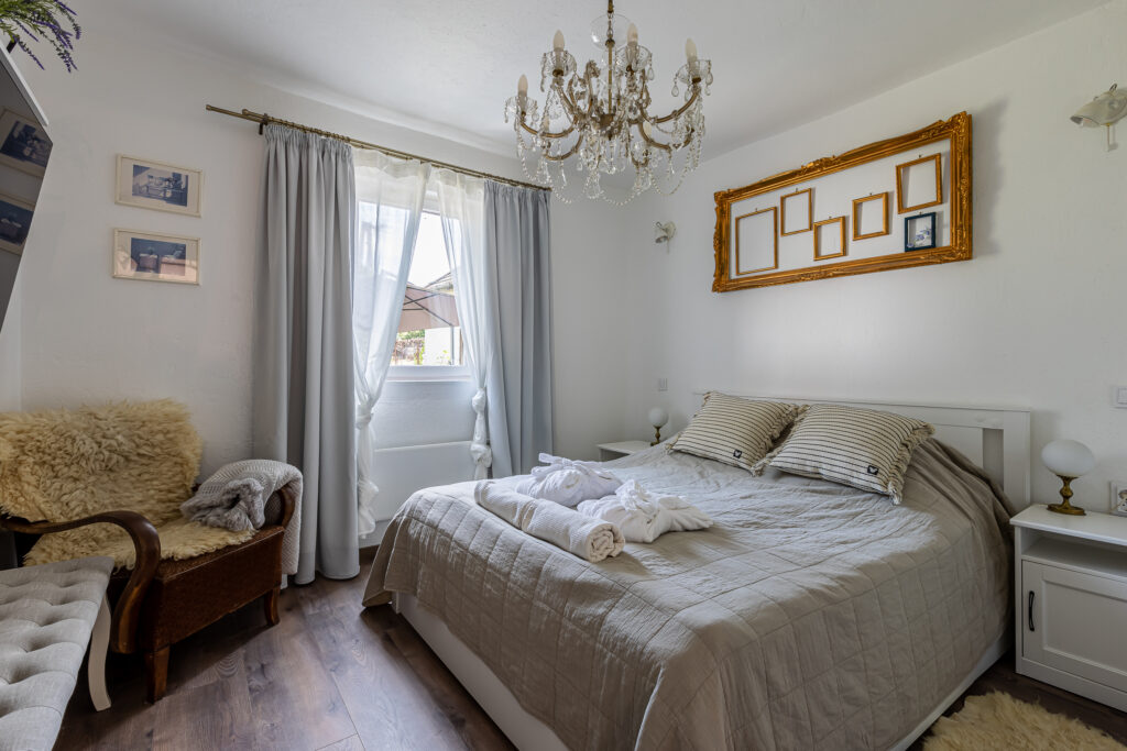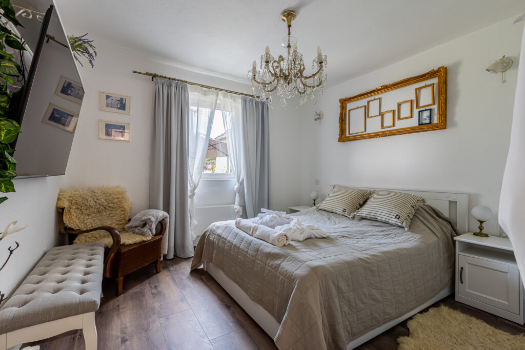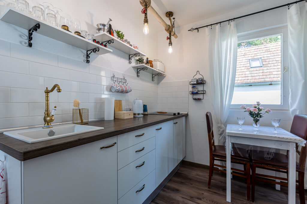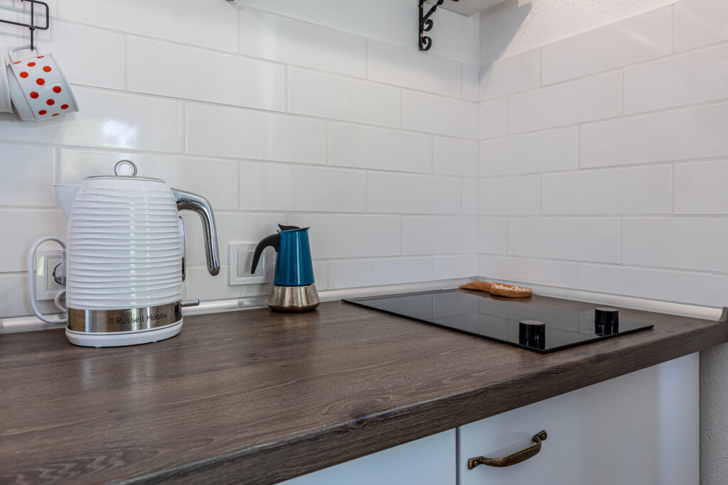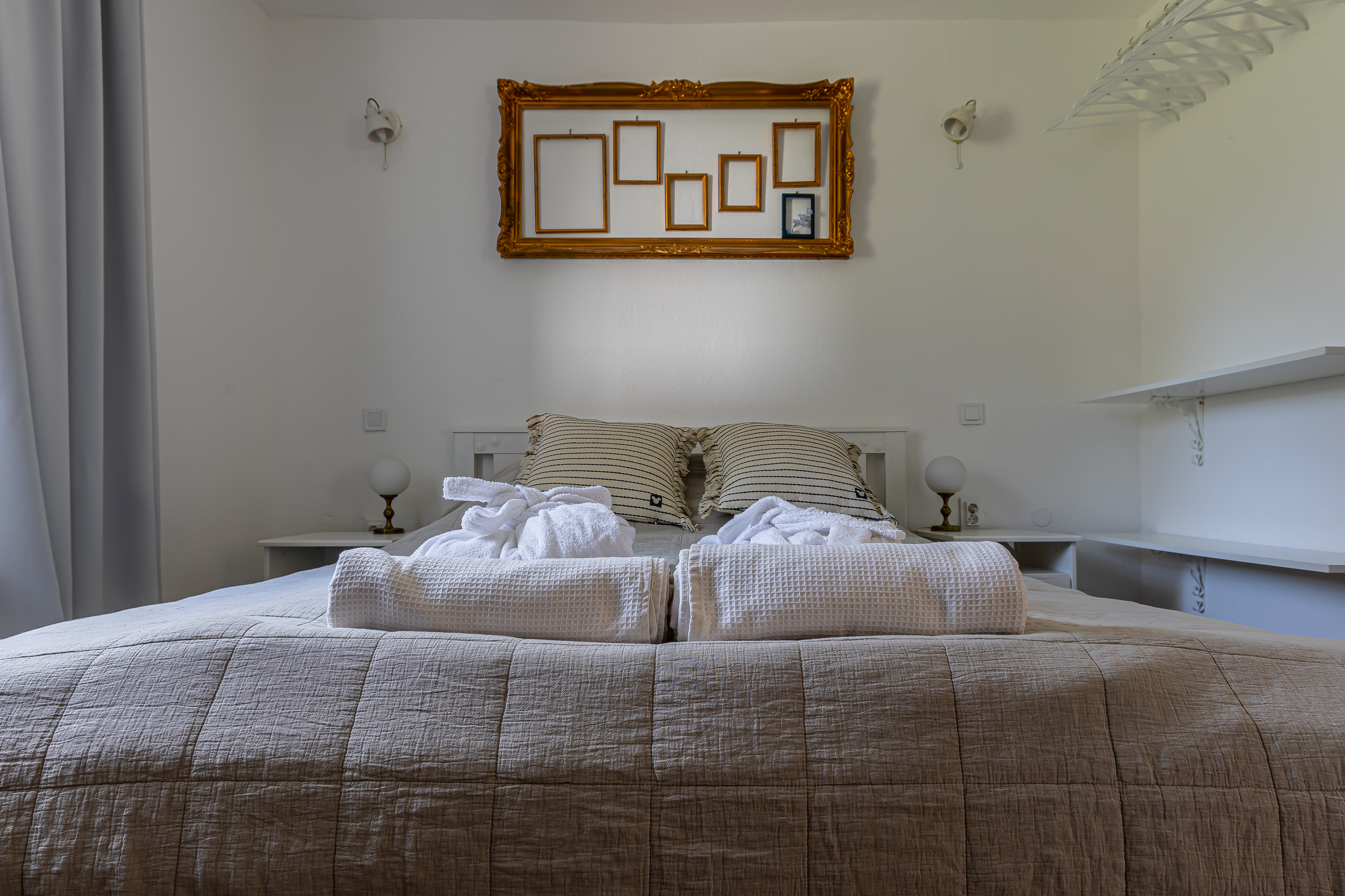 Hálószoba franciaággyal, síkképernyő (140 cm képátmérőjű) TV, ingyenes Netflix hozzáféréssel. – Fürdőszoba zuhanyzóval, WC-vel, ingyenes törölköző és fürdőköpeny használattal, hajszárítóval, illatszerekkel. Konyhában hűtőszekrény fagyasztóval, kerámialapos tűzhely, Air-Fry sütő, mikrohullámú sütő, kenyérpirító, vízforraló, kávéfőző, ingyenes vendégfogadó tea és kávé bekészítéssel, valamint a főzéshez az alapfűszerek is a ház ajándéka. Konyharuha, szivacs, mosogatószer a felszereltség részei.