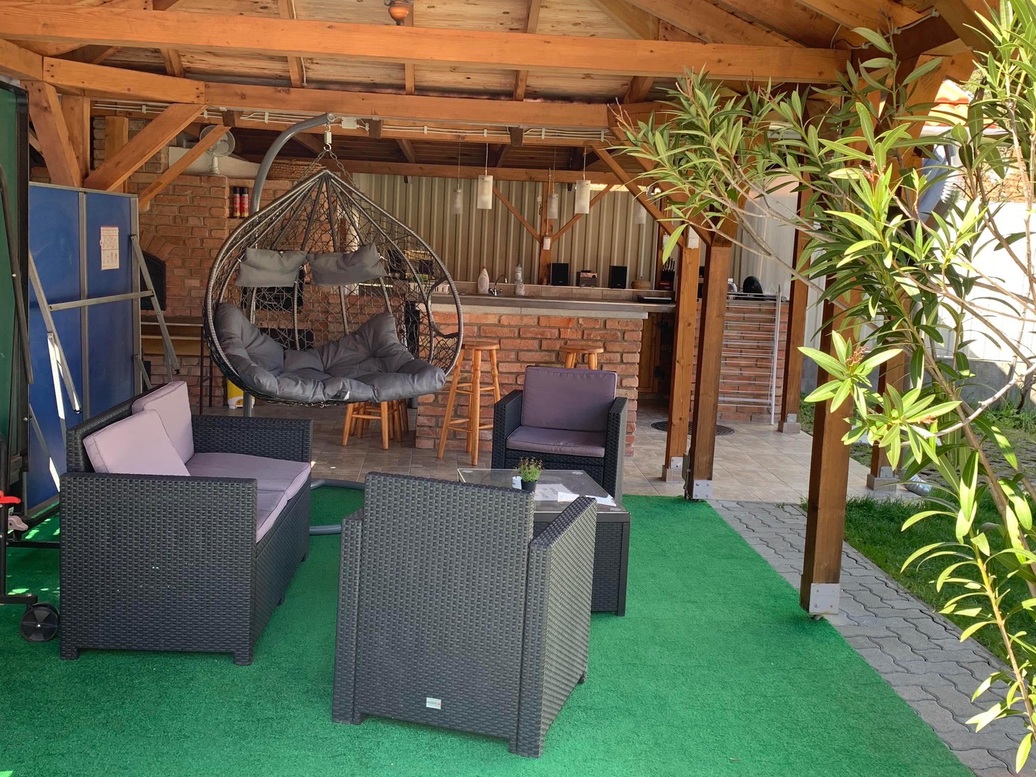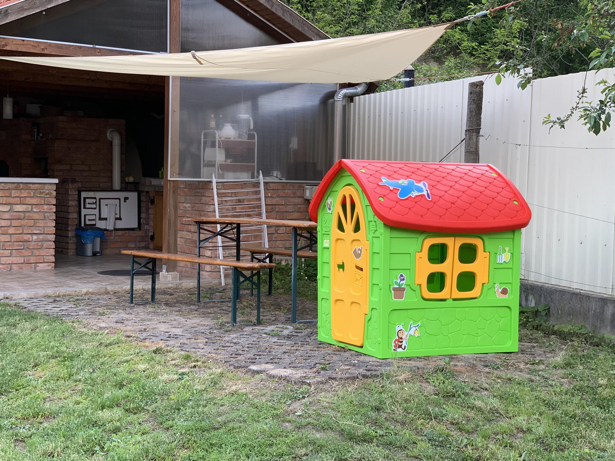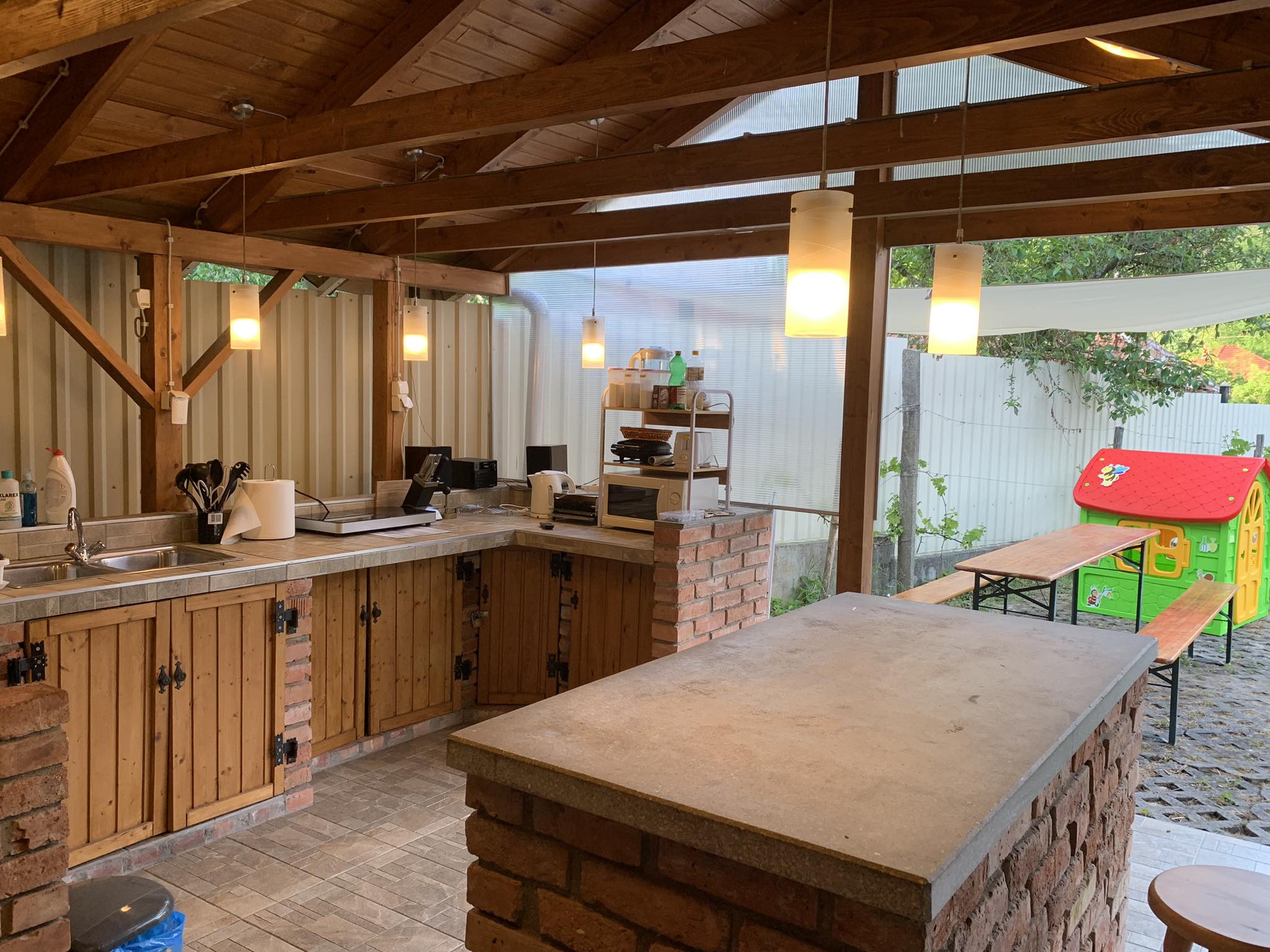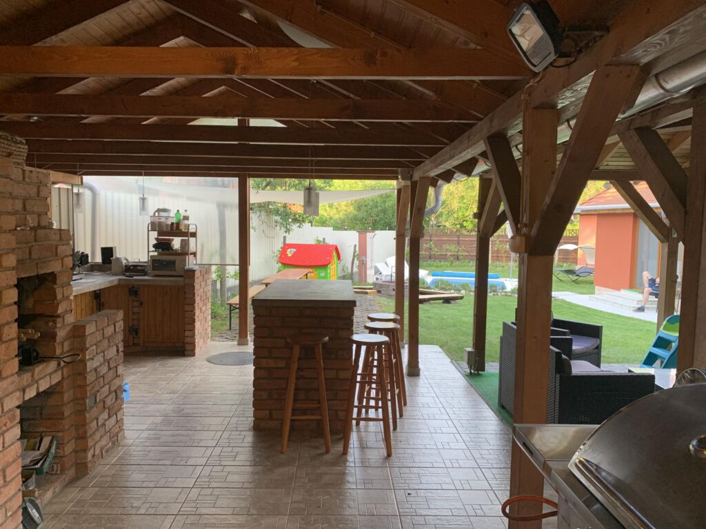 – kültéri pavilon asztalokkal, padokkal, hűtővel