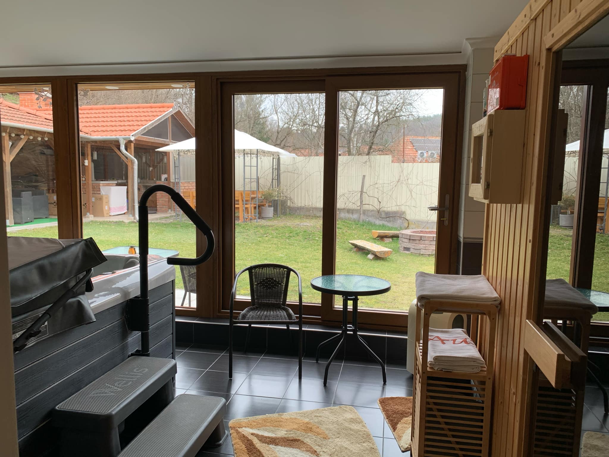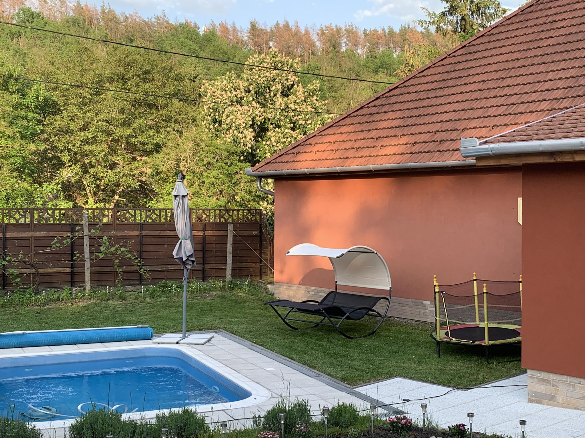 Szauna, Ping-pong asztal, Trambulin, TV, Bogrács/sütögetés, Kerékpár