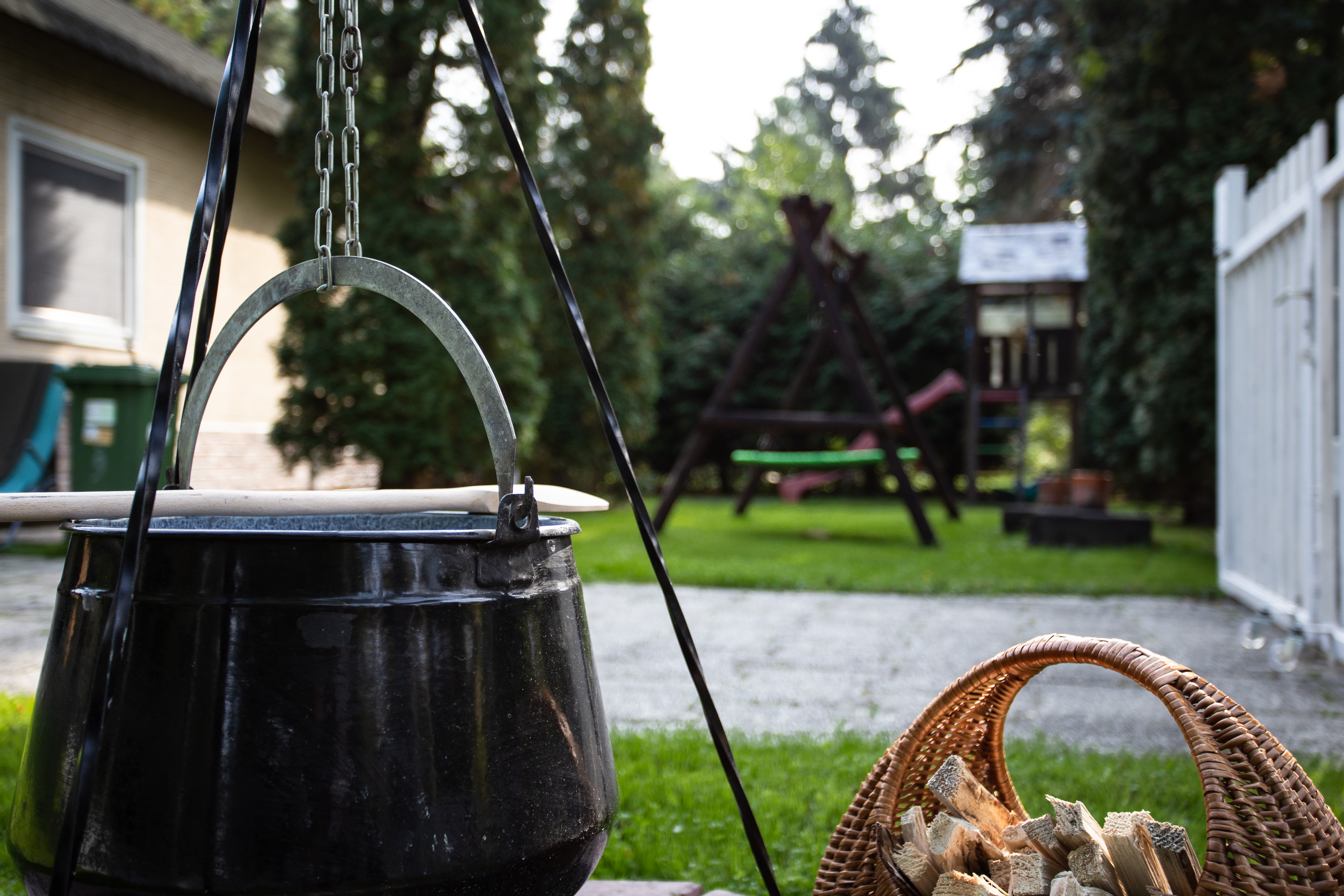 bográcsozás, sütögetés a kertben