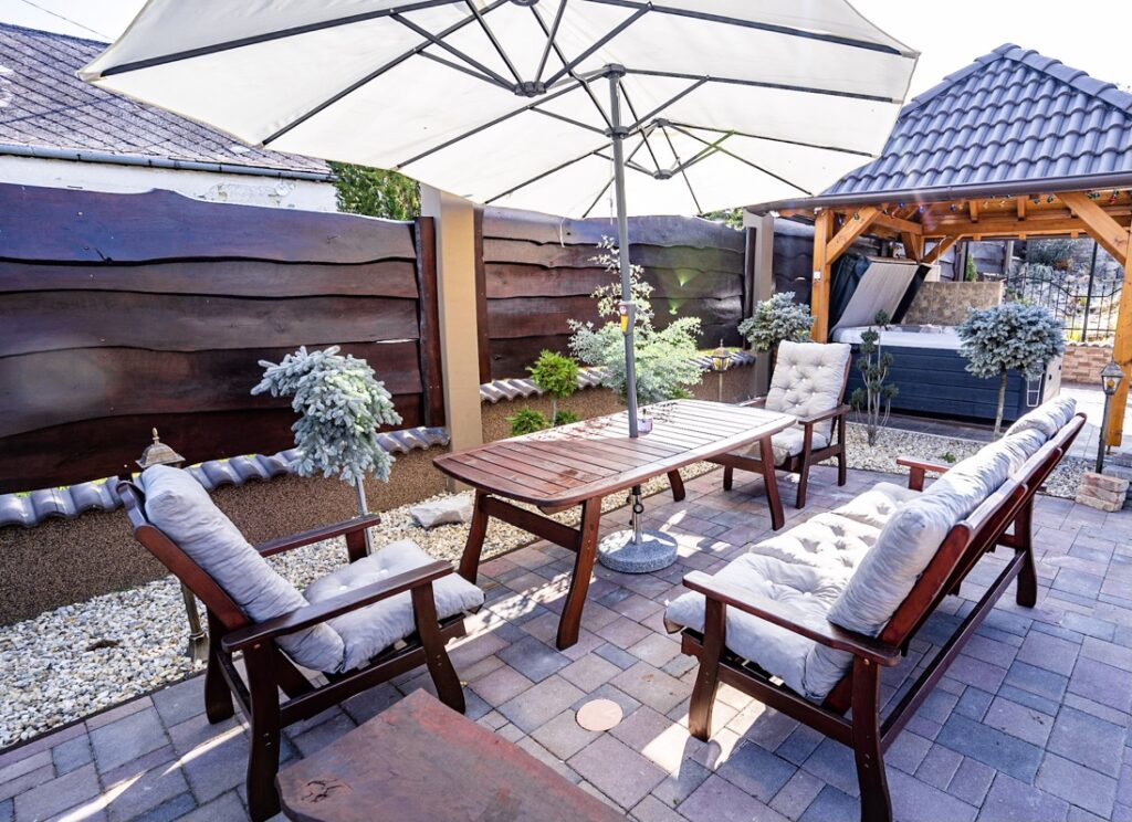 Párok hétvégi kikapcsolódása, családok több generációs vakációja, céges kirándulások szálláshelyeként vendégházunk egyaránt nagyszerű helyszín. Magas kerítésünk biztosítja a diszkréciót így nem kell aggódnunk, hogy kíváncsi szemek meglátnak minket. A diszkréciót a személyzet is biztosítja. Vendégházunkban a közös tereken a kikapcsolódásé a főszerep, a jakuzzi és a szauna mellett többséle eszköz biztosítja a kerti sütés-főzés lehetőséget. A házban a nappali mellett egy teljesen felszerelt konyha is a rendelkezésünkre áll, hálószobák mindenkinek megadják a szükséges privát teret és a nyugodt pihenés lehetőségét.