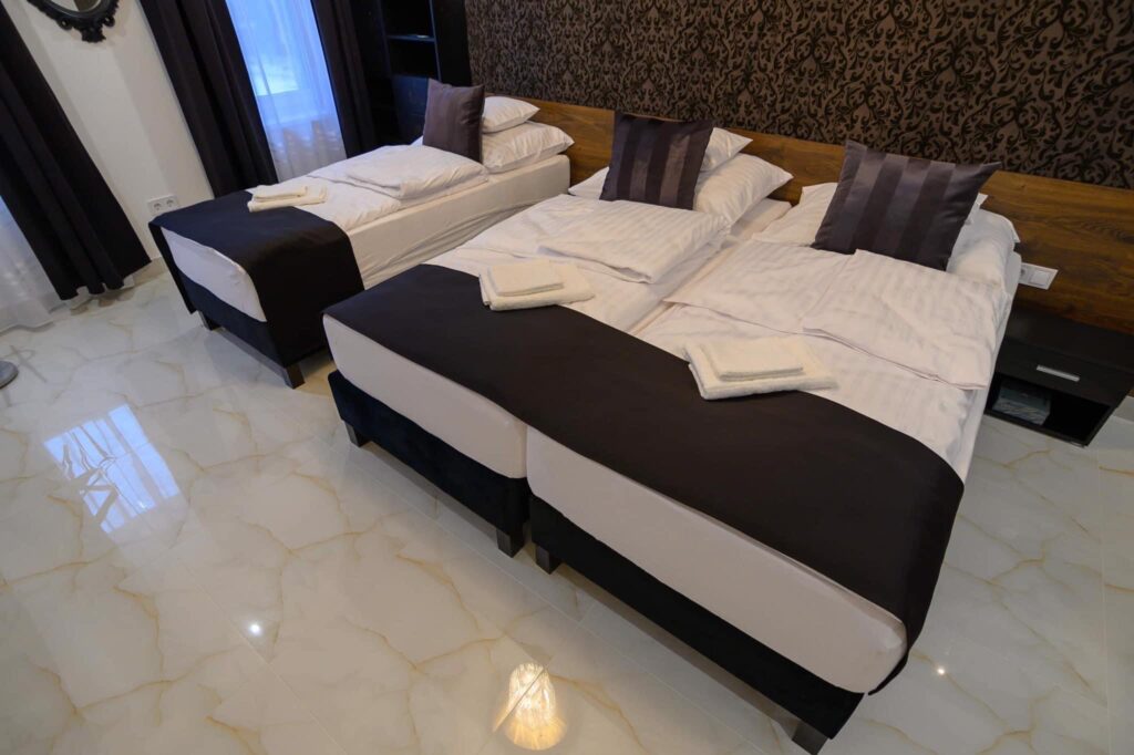• 9 ágy .4Szoba. plusz pót ágyak,3 összesen 12 -férőhely . Minden szobában okos Tv .Nagy nappali , 2-konyha.