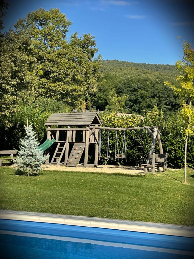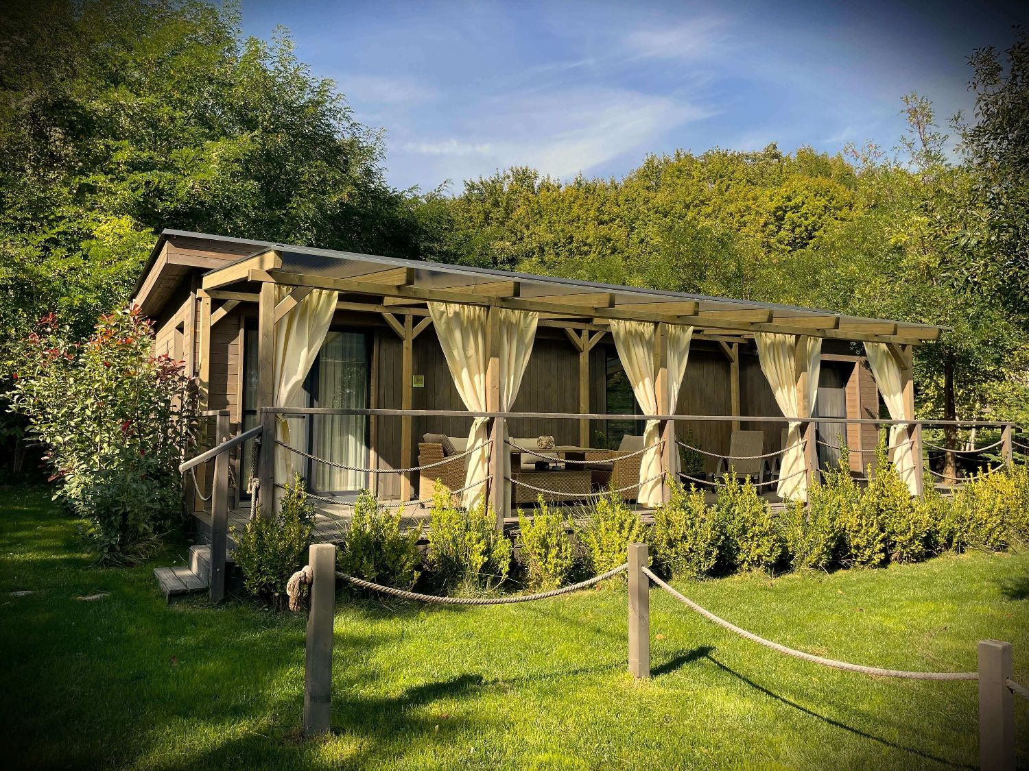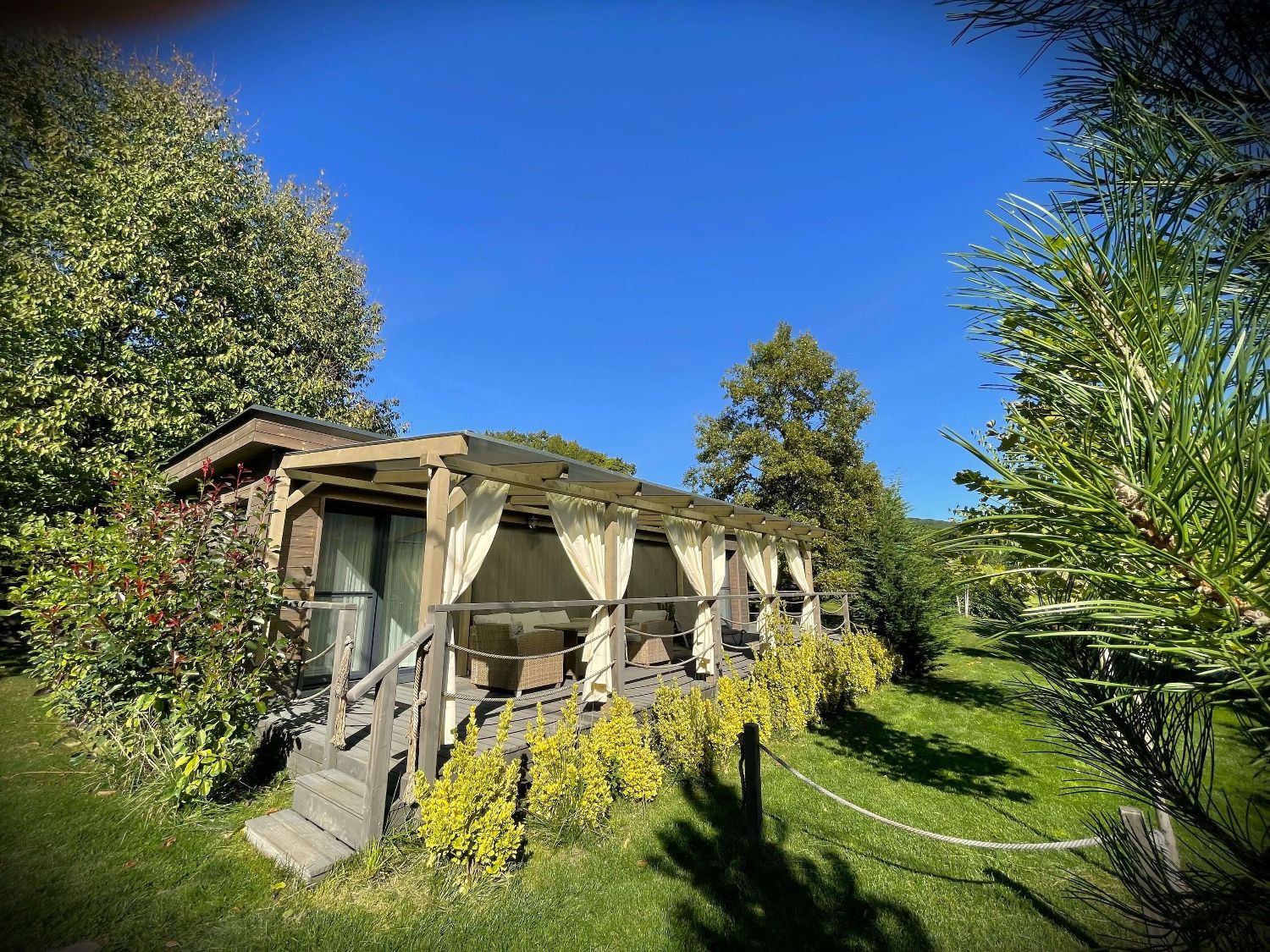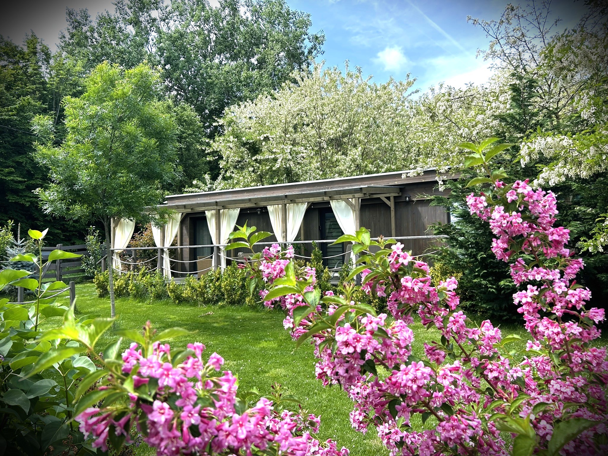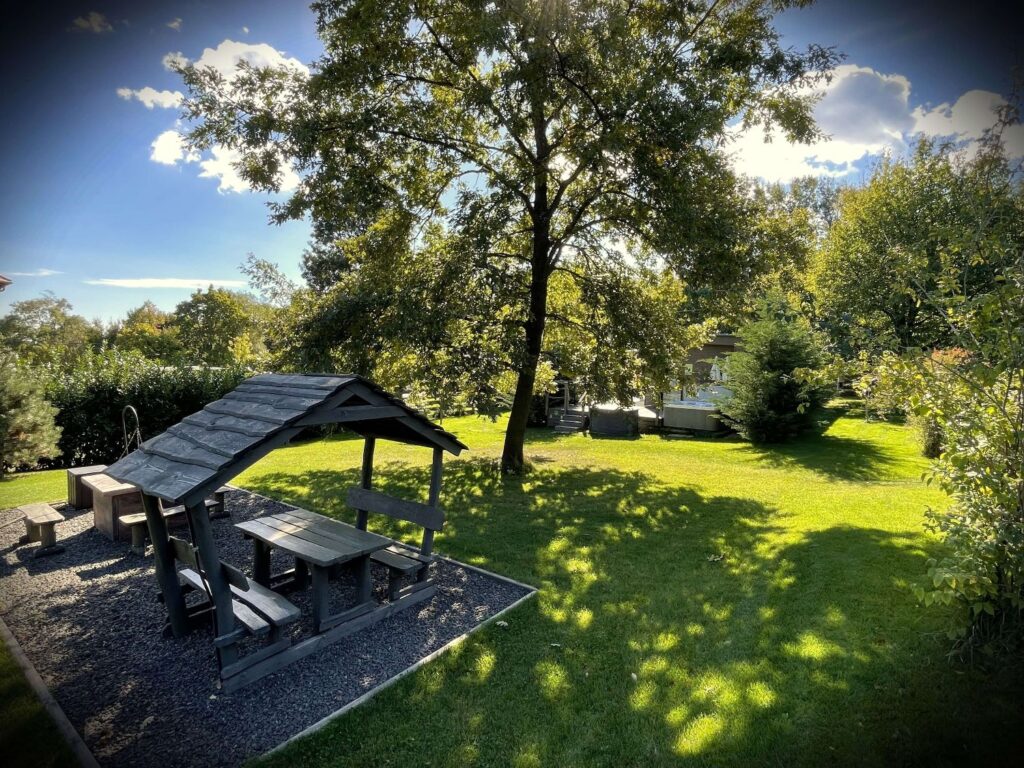 házanként fedett, privát jakuzzi, welcome ital, mindkét szobában légkondicionáló, elektromos fűtés, hipergyors wifi (a kertben és a medencénél is), mozicsatornák és több mint száz Tv csatorna, teljesen felszerelt konyha (mosogatógép, indukciós főzőlap, mikró, hűtő, Tchibo kapszulás kávéfőző), kávé és teaválogatás, grill, bogrács, hotelpapucs, törölköző szett (személyenként 1 kicsi fehér, 1 nagy fehér és 1 nagy wellness törölköző), fehér luxus minőségű, antiallergén damasztágynemű szett, bekészített higiéniai termékek, végtakarítás, bababarát szolgáltatások, babafelszerelések, játszótér.