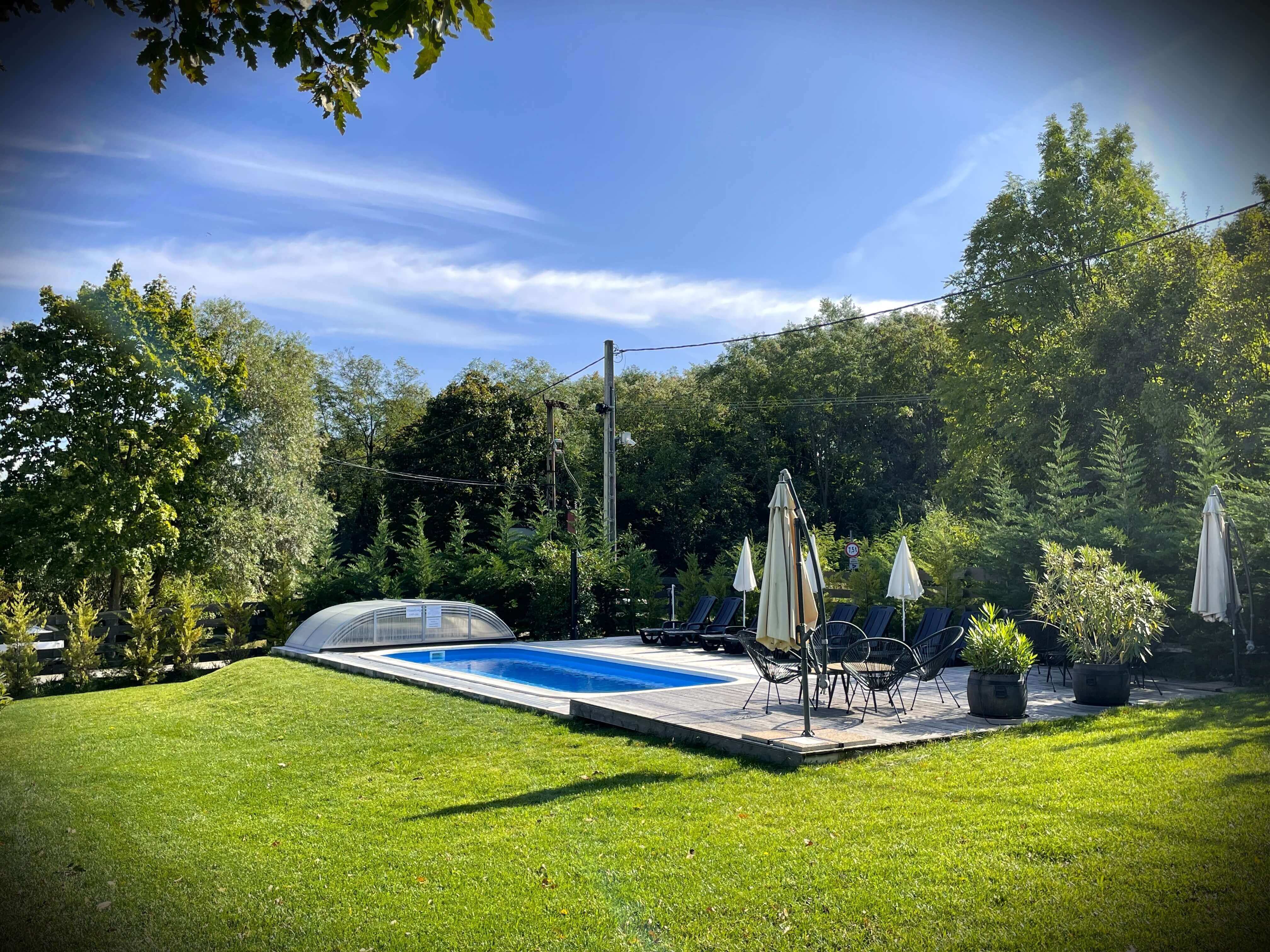 Párok, családok, kisebb baráti társaságok számára ideálisak 4 csillagos minősítésű, modern, prémium, fedett, privát jakuzzis faházaink szezonális medencével, amelyek gyönyörű erdei környezetben találhatók a Börzsönyben. Faházanként 2-4 főt (+1 babát) tudunk fogadni. A két stílusos faház külön-külön és együtt is lefoglalható.