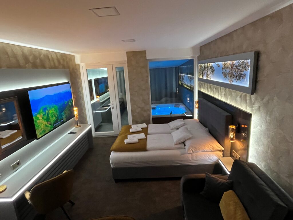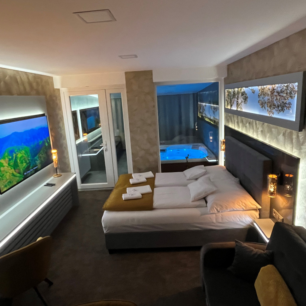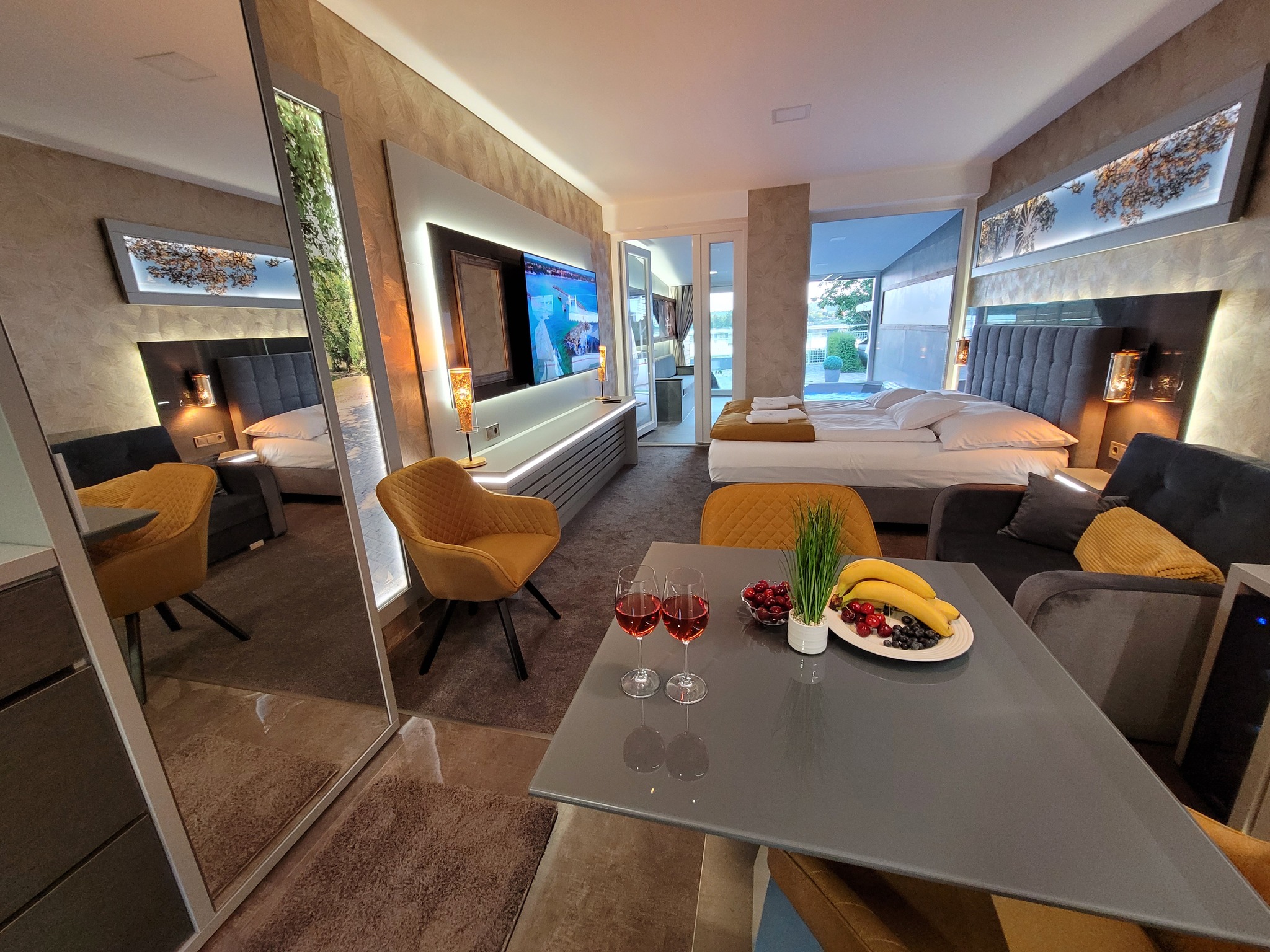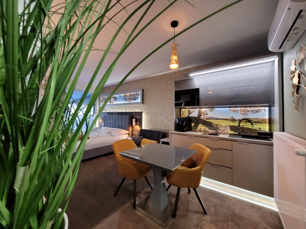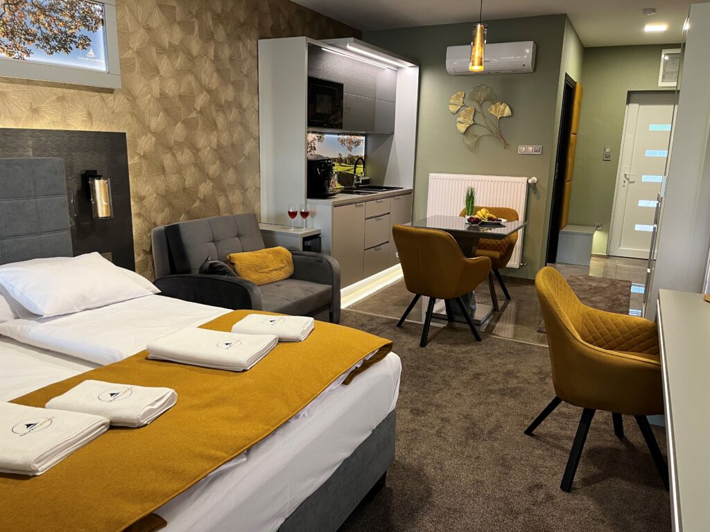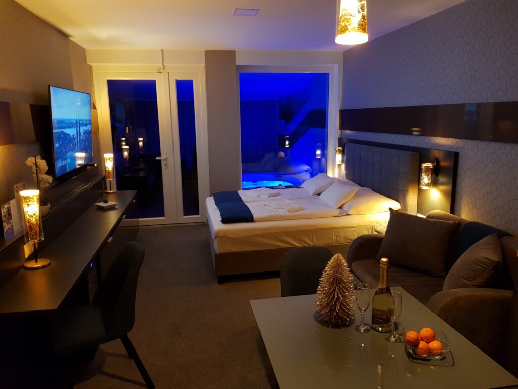 A különleges kialakítású klimatizált szoba és a fűtött jacuzzi részleg kertkapcsolattal, tópanorámával, jól felszerelt konyhával, minibárral, széles borkínálattal áll rendelkezésre. Az apartmanhoz óriás tévé, zárt parkoló, pihenőkert tartozik. Eredetileg 2 főre javasoljuk, de plusz 1 főre pótágyat is biztosítunk. Ha szeretnétek kicsit kimozdulni otthonról, de nem szeretitek a zsúfolt helyeket, akkor a Galion Gardenben a helyetek. A szállás az érkezés napján 14:00 órától foglalható el, a távozás napján pedig 10:00 óráig használható.
