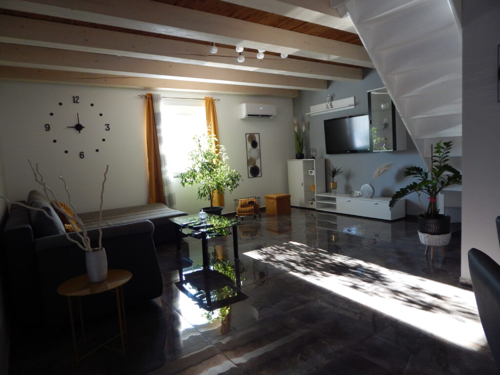 KEDVES LÁTOGATÓ! Kiadó apartman Tapolcán nyugodt, csendes környezetben. Különálló ház saját udvarral, amelyen jakuzzi és szauna kényezteti a pihenni vágyókat. A házban, ami tiszta és igényes 6 fő fér el kényelmesen. A képek magukért beszélnek. Wifivel és hűtő-fűtő légkondicionálóval felszerelve. Közelben található élelmiszerbolt, étterem. Egy kis sétával elérhető a festői szépségű Tópart, a híres Tavasbarlang és a belváros. Közeli Balaton-parti települések: Badacsony, Szigliget, Révfülöp. 1-2 Fő 40.000.-/ éj/ház szauna és jakuzzi használattal 3-4 Fő 50.000.-/ éj/ház szauna és jakuzzi használattal 5-6 Fő 65.000.-/ éj/ház szauna és jakuzzi használattal Hétvégén minimum 2 éjszaka foglalható Megkérek minden szállásfoglalót az elutazás napját ne jelöljék meg a táblázatban! Megjegyzésben kérem leírni az éjszakák számát. Köszönöm Gyerekeknek 13 éves korig Ingyenes Idegenforgalmi adó : 18 éves kortól 590 Ft / fő / éjszaka Takarítás díja: 6.000 Ft / foglalás Áraink forintban értendőek. A kiállított számla nem Áfás,de elszámolható! Változás jogát fent tartom! Érkezés: 14:00 óra Távozás: 10:00 óra Imádjuk a kisállatokat, de sajnos őket nem tudjuk fogadni. Foglalási és lemondási feltételek: A foglalás után e-mailben kapsz megerősítést a befizetendő összegről, amelyet átutalással tudsz kiegyenlíteni az emailben megadott bankszámlára. Az összeget 2 napon (48 órán) belül szükséges rendezned ahhoz, hogy a foglalásod biztosítva legyen. Az érkezés napját megelőző 14 munkanapon belüli lemondás esetén a befizetett összeg fele (50%-a) kerül visszatérítésre. Az érkezés előtt 7 nappal történő lemondás 100% a lemondási díj. NTAK : MA21006075