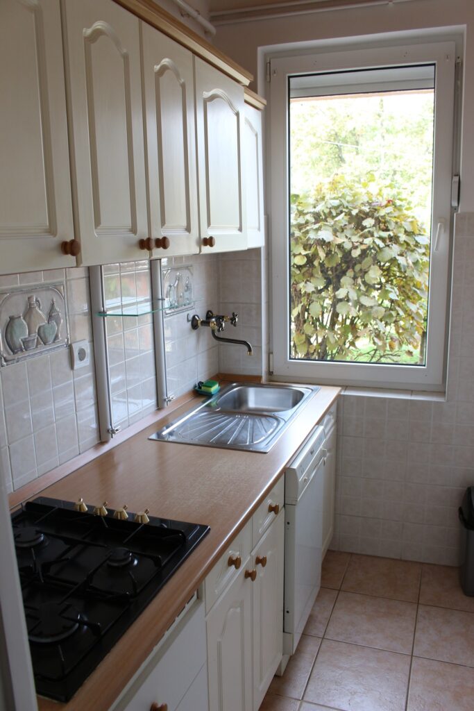 • Felszerelt konyha (gáztűzhely, mikró, mosogatógép botmixer, alapfűszerek, kávéfőző és teafőző)