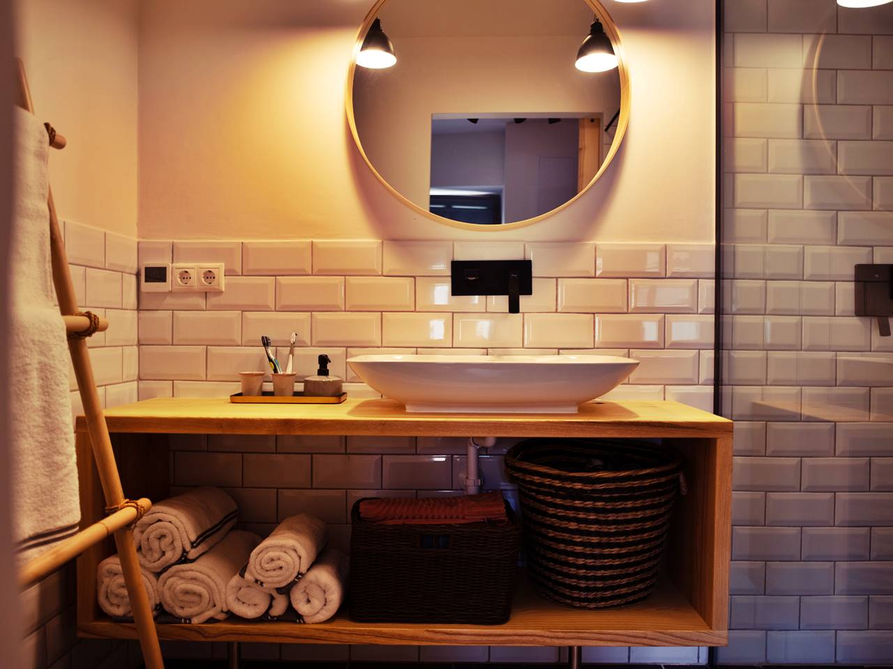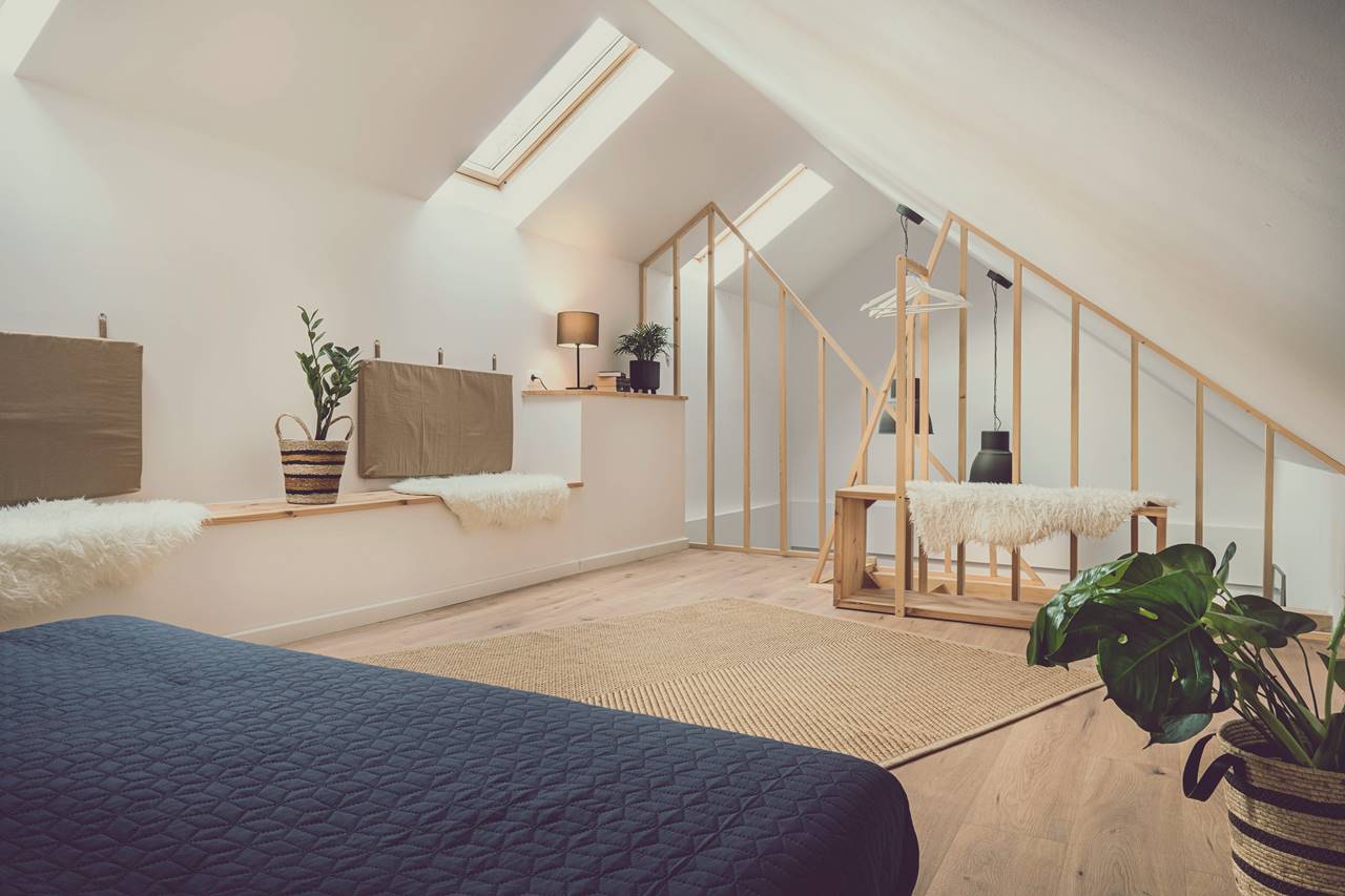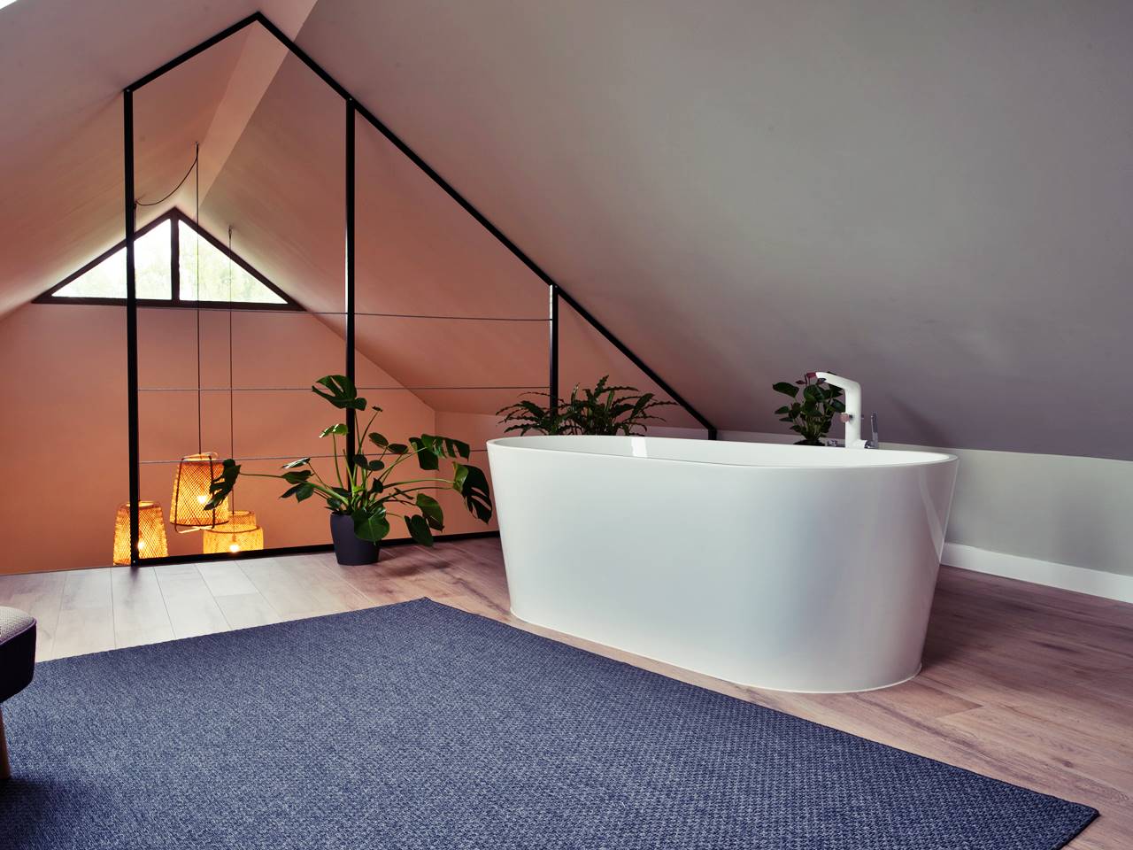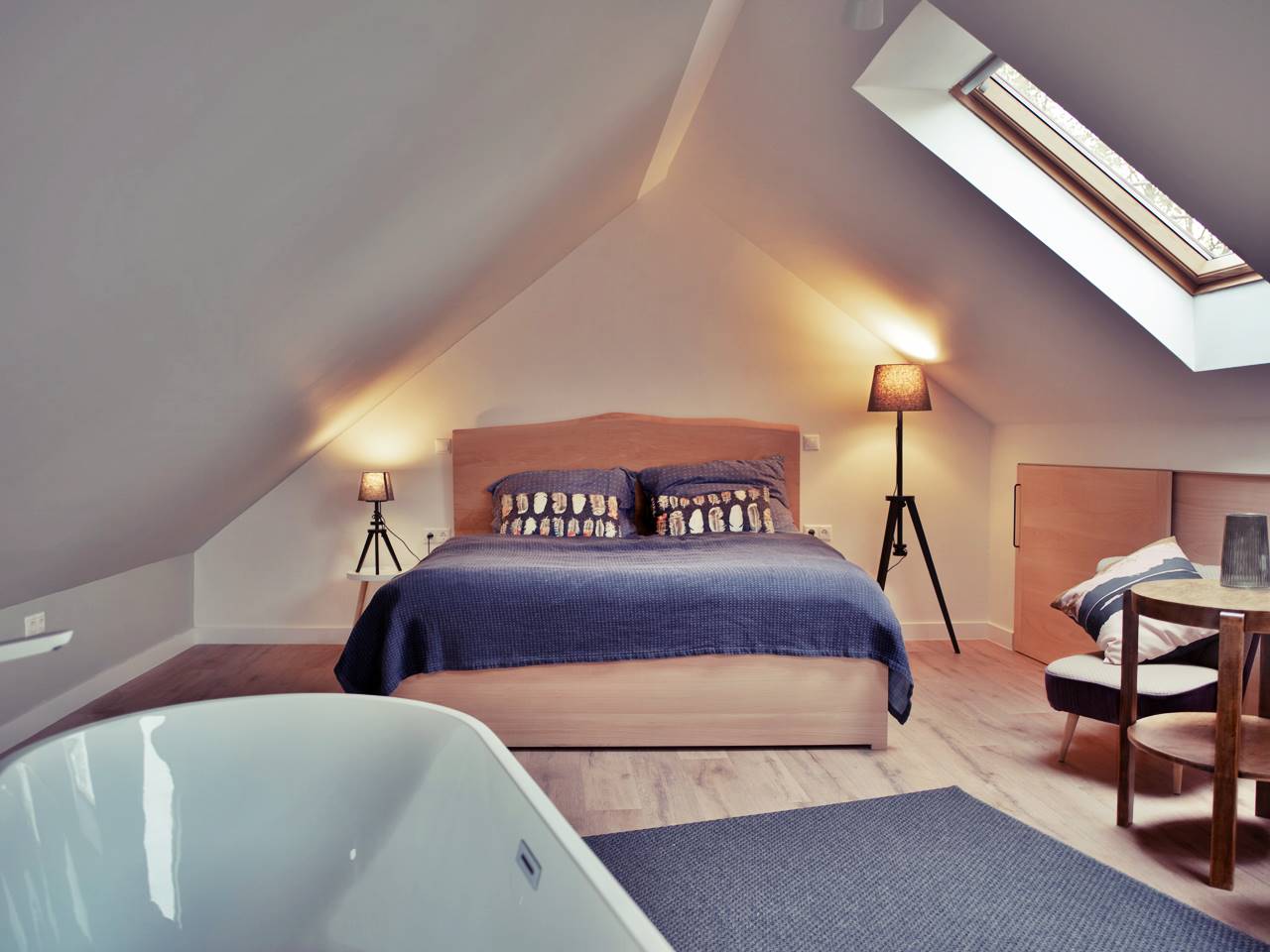 Fürdőkád a galérián + zuhanyzós fürdőszoba (hajszárító, törölköző, fürdőköntös)