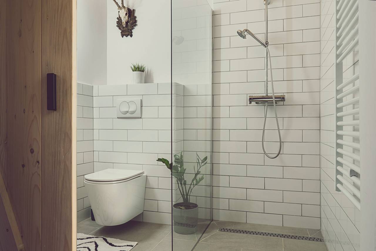Zuhanyzós fürdőszoba (hajszárító, törölköző, fürdőköntös)