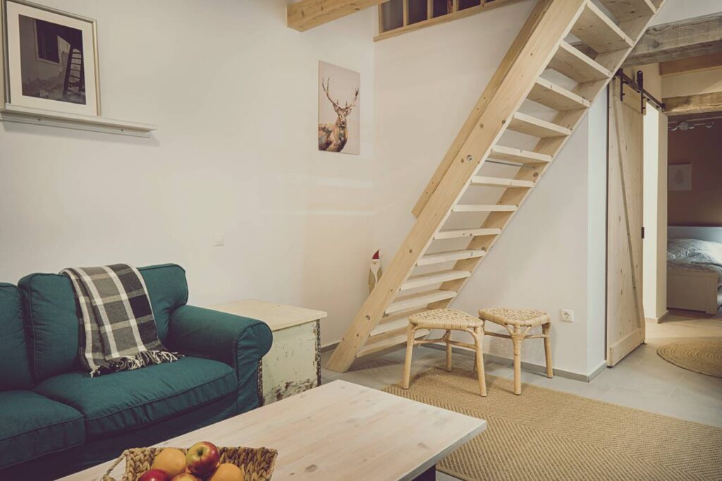 A 110 évvel ezelőtt épült palóc parasztház jelleget megőrizte a külső, ám az épület belülről teljes átalakításon esett át. Ennek eredményeképpen egy tágas, galériás, a régi és a modern stílusok jegyeit magán viselő két hálós, nappali konyhás apartman jött létre. A tágas földszint és előtér kellő helyet biztosít a gyerekeknek vagy baráti összejövetelek számára, míg a szabadon álló káddal ellátott nagyméretű galéria egész napos pihenésre, elvonulásra is alkalmas.