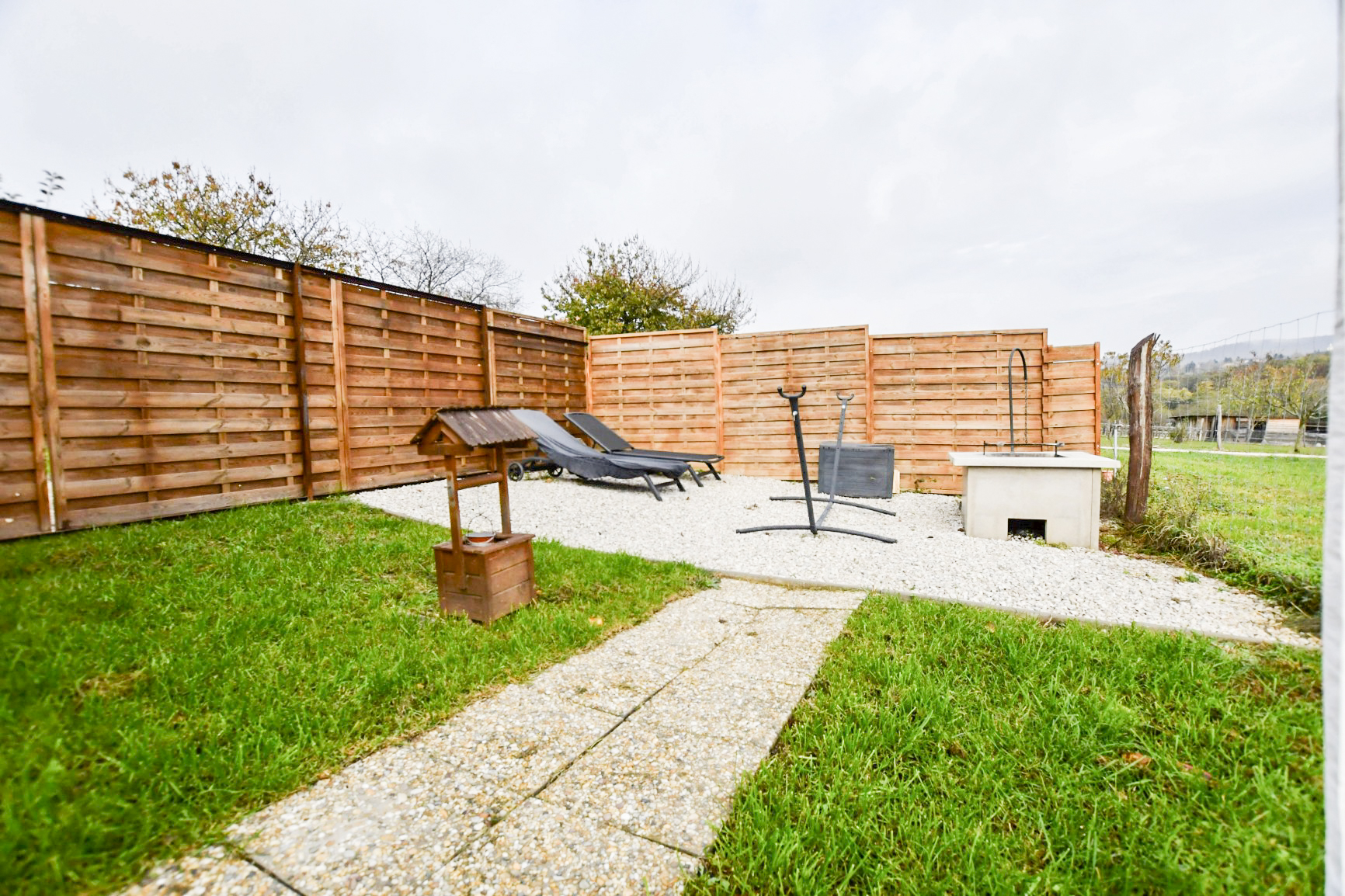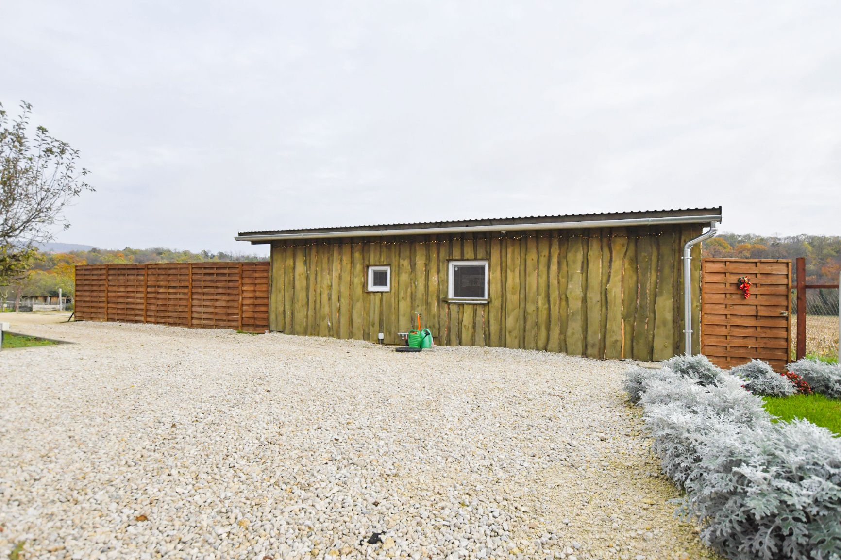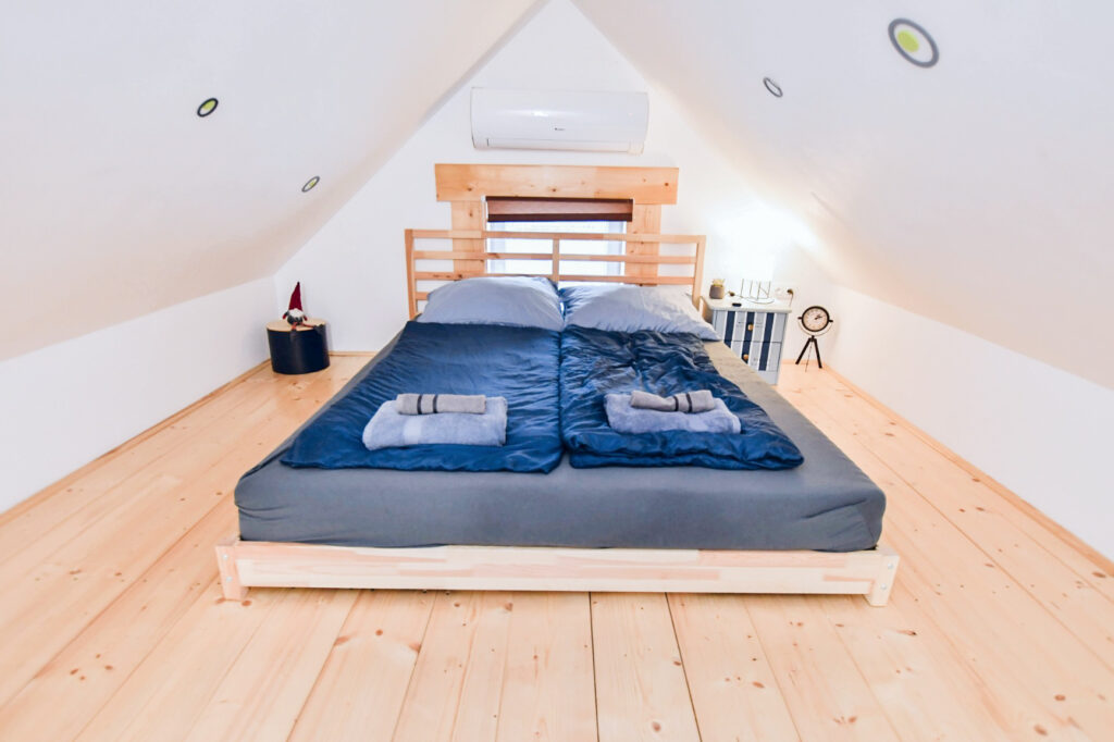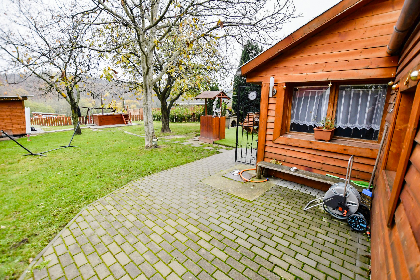 A zárt udvarban külön kerti bútorok, grillező, bográcsozási lehetőség és fedett jacuzzi (egész évben) szolgálja a kellemes pihenést. Igazi kis világ elől elbújós kuckó, tökéletes pároknak, vagy pedig aki egyedül szeretne egy kicsit elbújni! Erdőre néző kilátás, reggelente őzikéket is láthatunk, ahogy sétálgatnak a kerítés túloldalán.