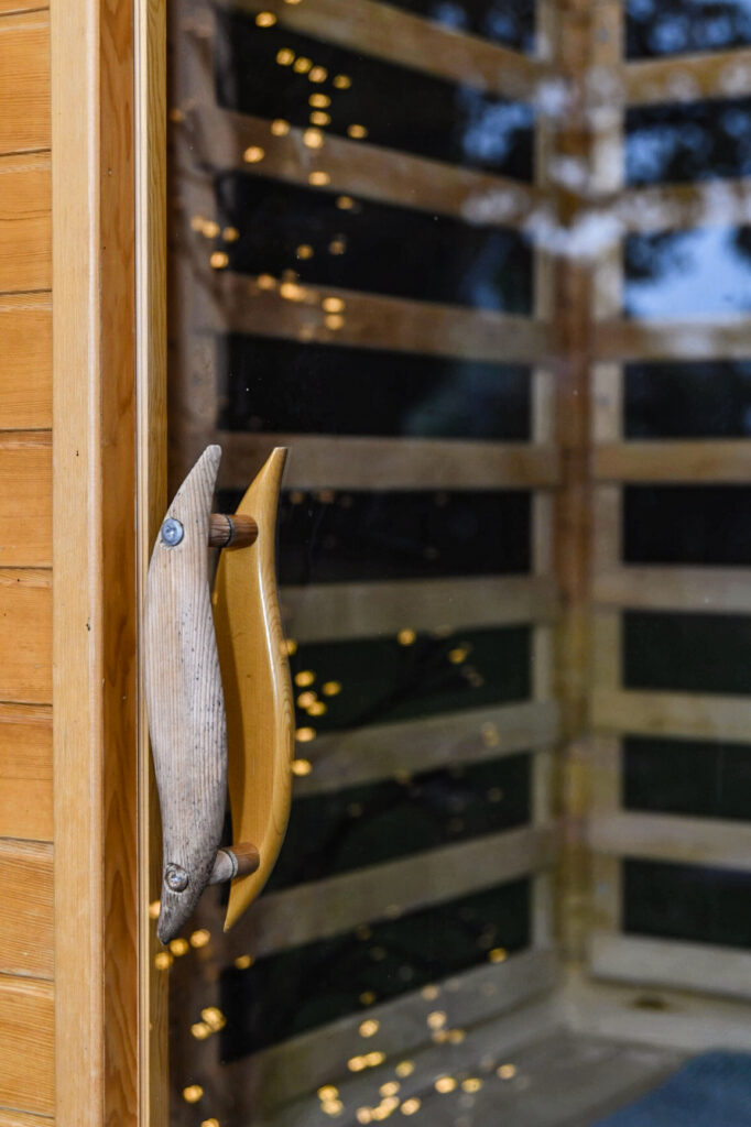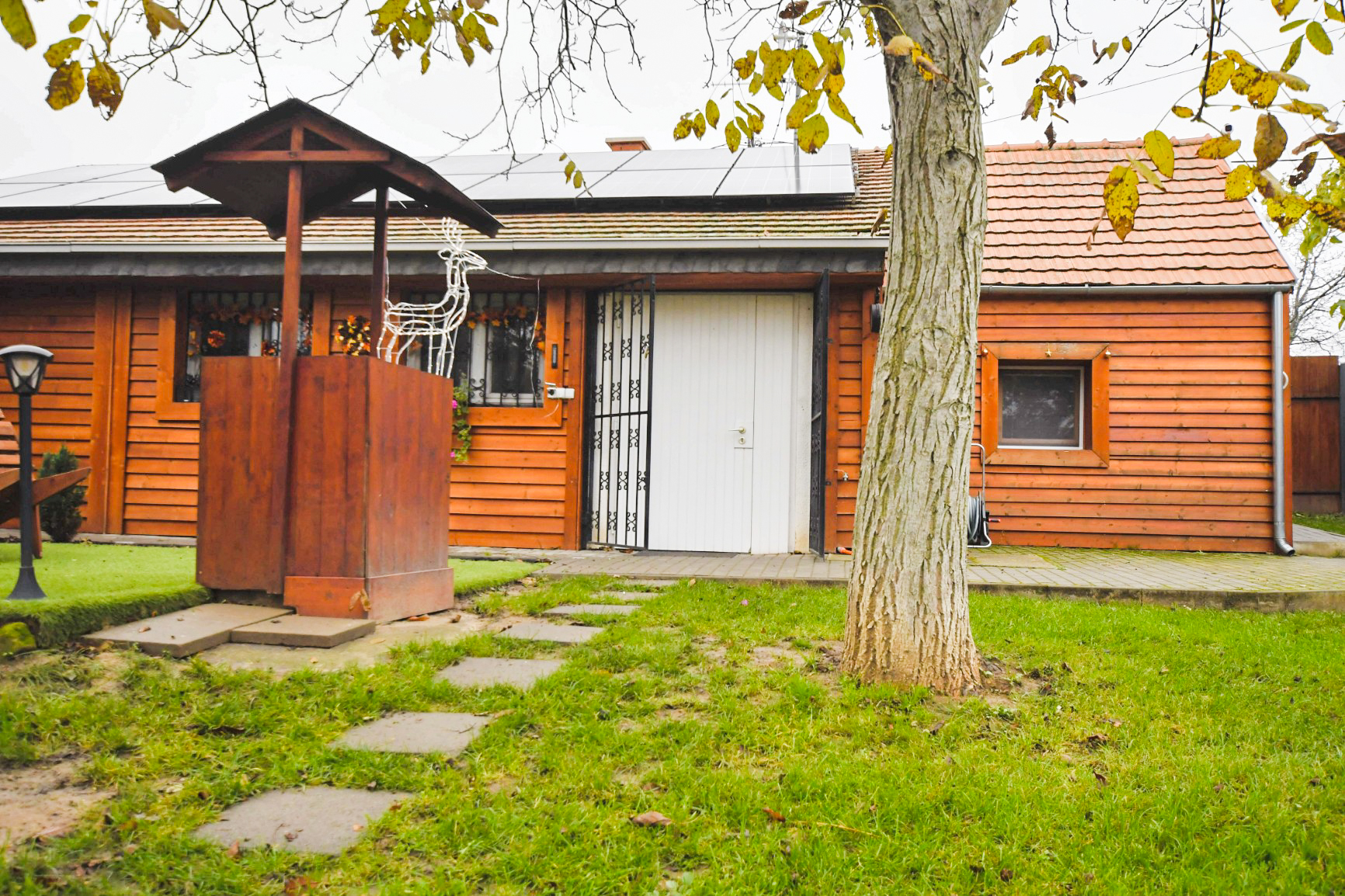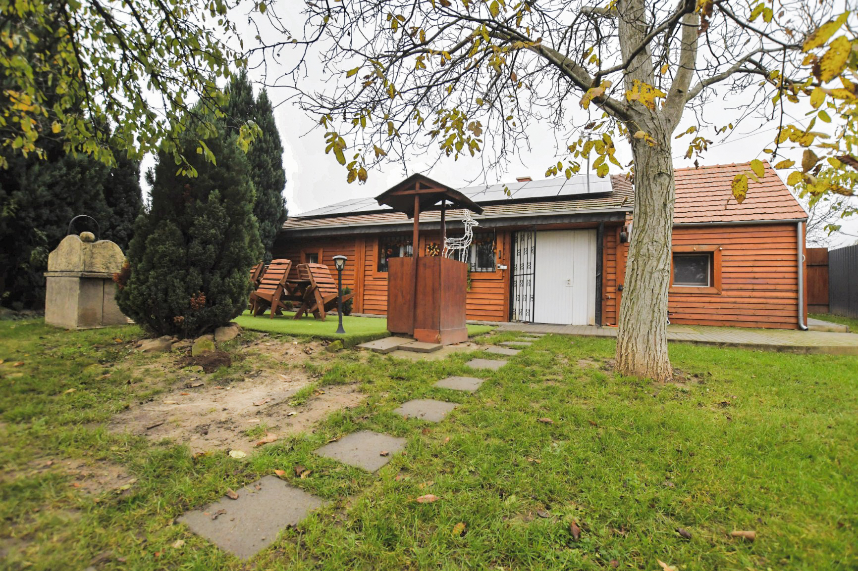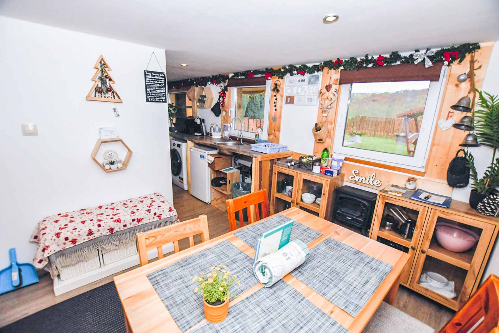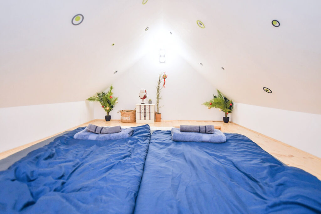 A zárt udvarban külön kerti bútorok, grillező, bográcsozási lehetőség és fedett jacuzzi (egész évben) szolgálja a kellemes pihenést. Igazi kis világ elől elbújós kuckó, tökéletes pároknak, vagy pedig aki egyedül szeretne egy kicsit elbújni! Erdőre néző kilátás, reggelente őzikéket is láthatunk, ahogy sétálgatnak a kerítés túloldalán.