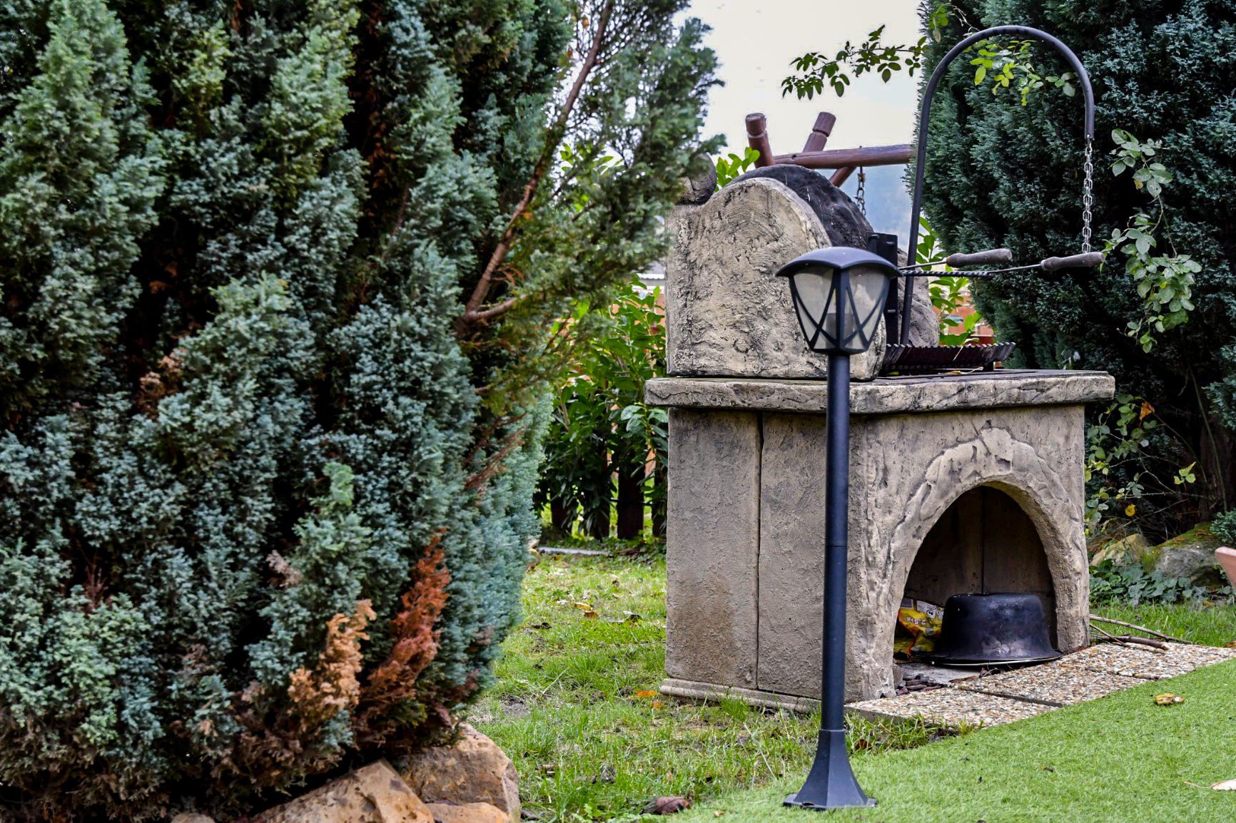 A zárt udvarban külön kerti bútorok, grillező, bográcsozási lehetőség, jacuzzi (egész évben), medence (júniustól szeptbember végéig) és fűthető dézsa (sajnos átmenetileg nem üzemel) szolgálja a kellemes pihenést.