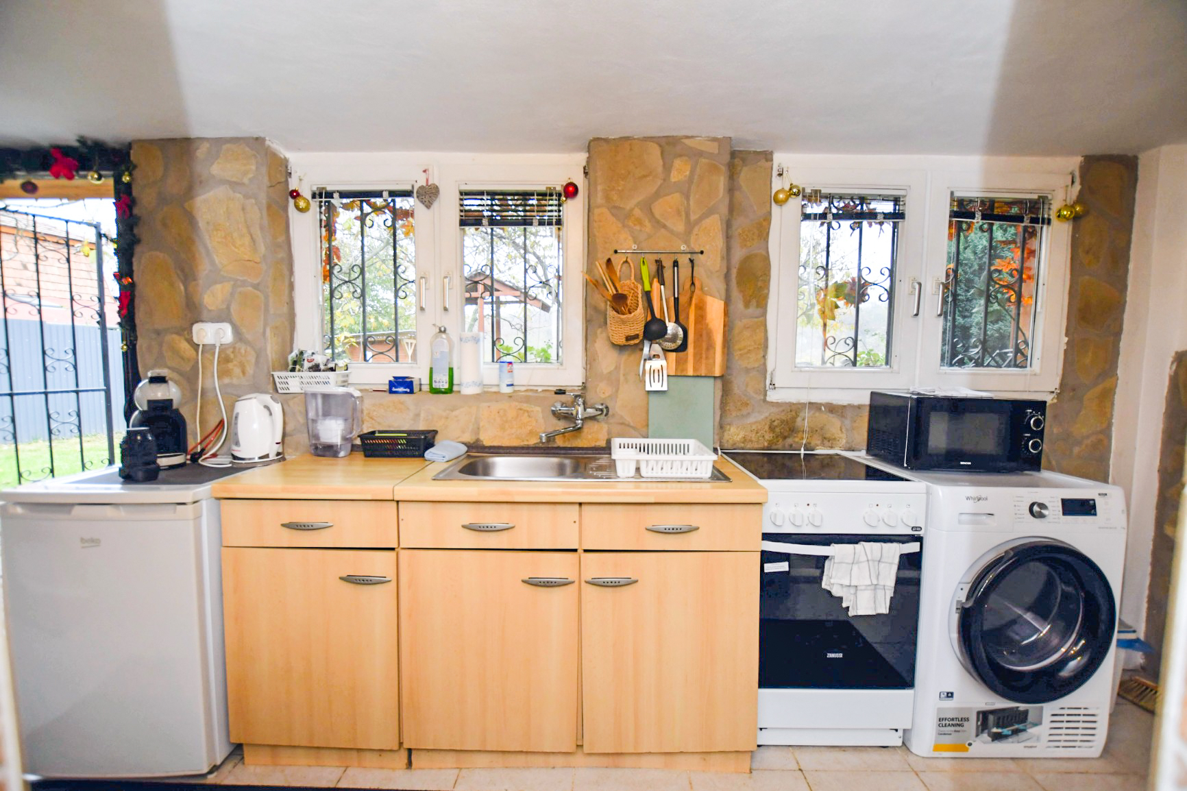A vendégházhoz tartozik egy nagyon jól felszerelt konyha és sarokkádas fürdőszoba. Az apartmanban internetkapcsolat, hűtő, mosógép, beépített főzőlap és sütő, szárítógép, kávéfőző, vízforraló, mikrohullámú sütő, vasaló, hajszárító biztosított.
