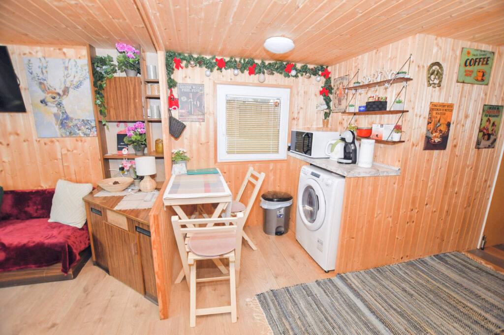 A vendégházhoz tartozik egy jól felszerelt konyha és zuhanyzós fürdőszoba. Az apartmanban internetkapcsolat, TV, hűtő (fagyasztóval), mosógép, mosogatógép, főzőlap és mikrohullámú sütő, kávéfőző, vízforraló, vasaló, hajszárító biztosított.