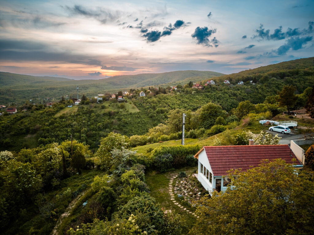 Panorámás elhelyezkedés – Erdőre és Pécsre néző kilátás a Mecsek ölelésében