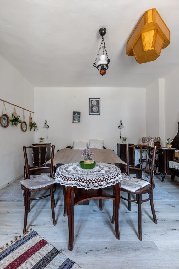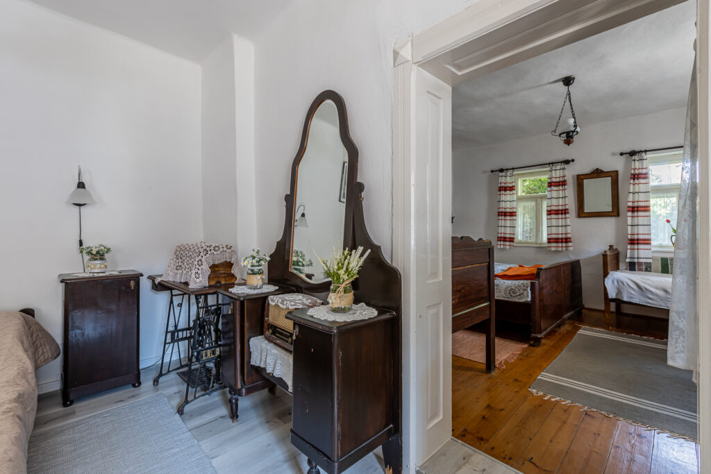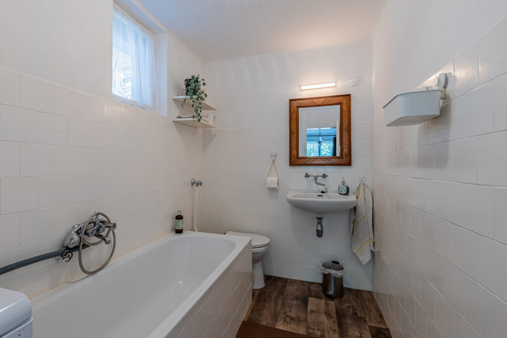 Főépület: 6 fő részére + (1 pótágy lehetőség/ + babaágy) fürdőszobával, WC-vel.