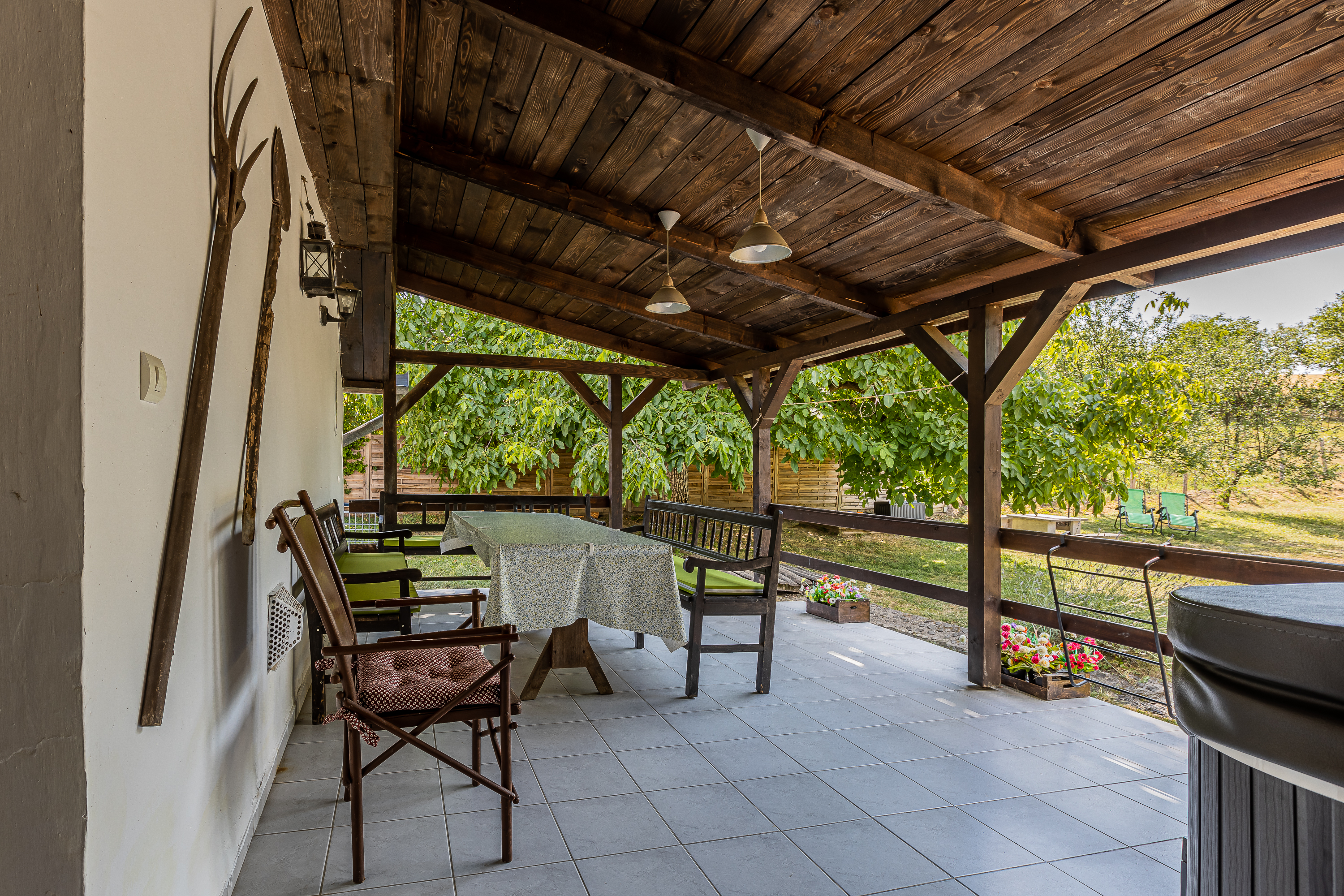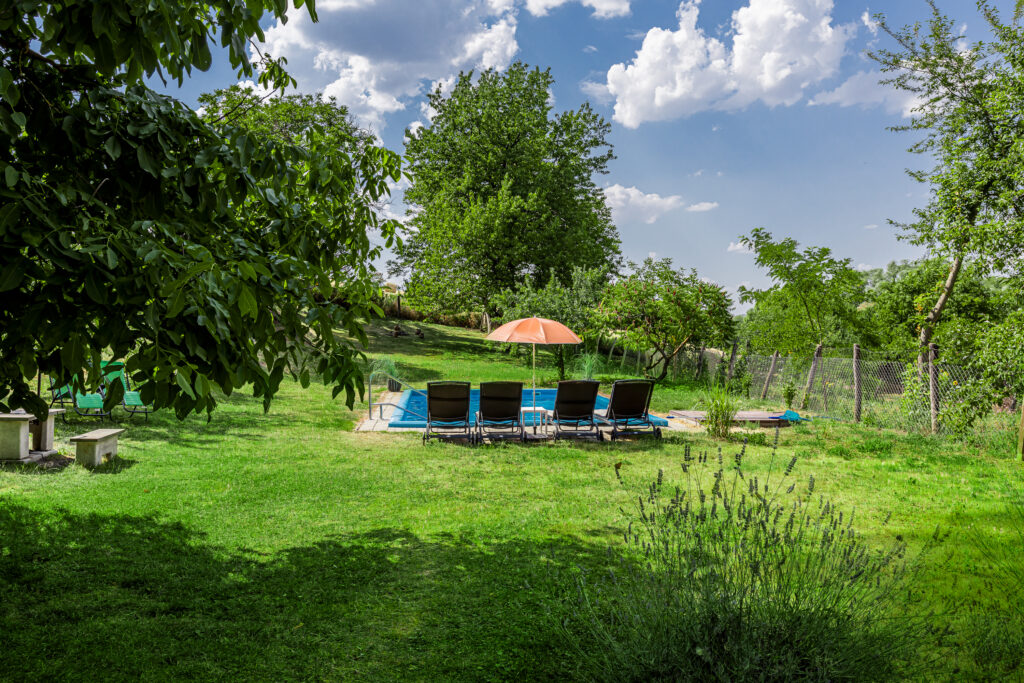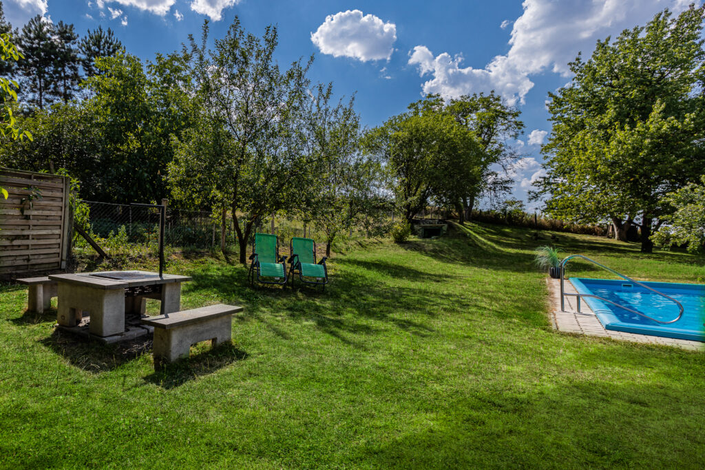 Medencés, jacuzzis vendégház, melyet az autentikus hangulat és az igényes, modern berendezés ötvözetével alakítottunk ki. A ház, csendes, vidékies környezetben található, így mindazoknak ideális, akik kikapcsolódnának, vagy csak egyszerűen elvonulnának a város zajától. MÁR 2 fő esetén is kizárólagos házhasználatot biztosítunk, azaz Önökkel egy időben más nem fog a szálláshelyen tartózkodni. Egyedül élvezhetik a ház kényelmét, Önöké a nagy úszómedence, a jacuzzi is, és gondtalanul sütögethetnek, grillezhetnek a tágas kertben is.