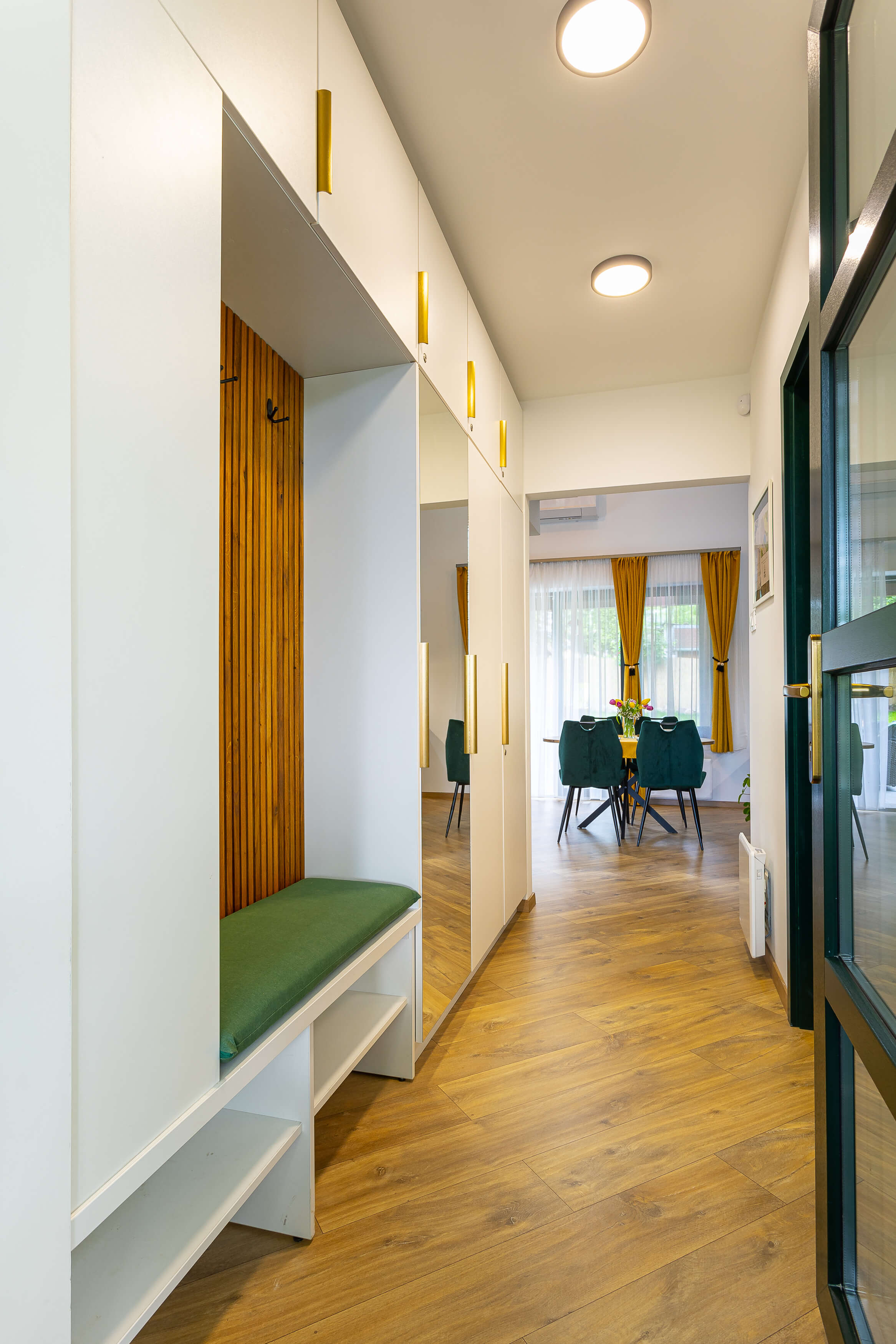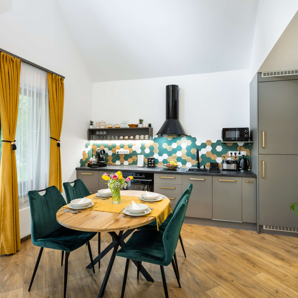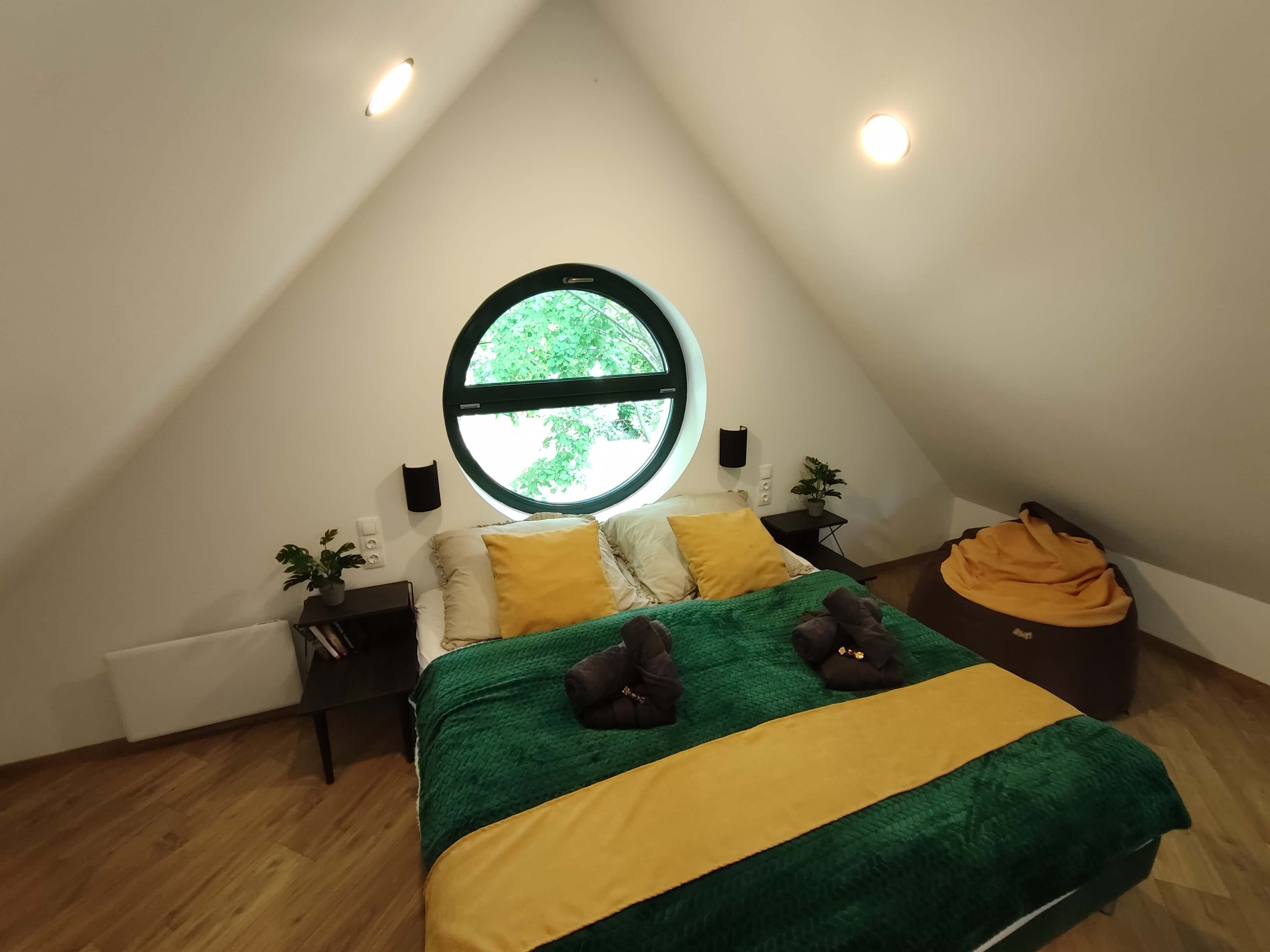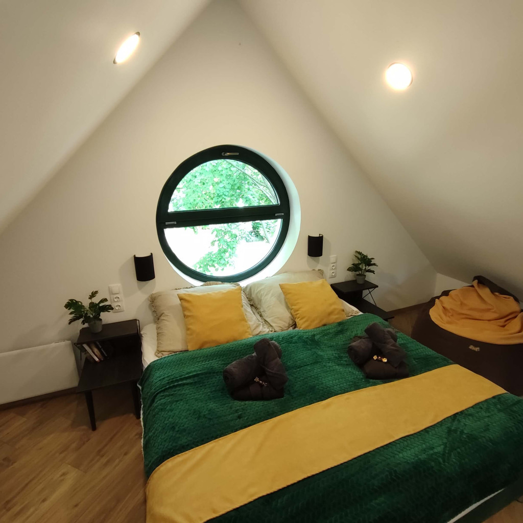 A MOHA Weekendben 4 fő kényelmes és teljes értékű elhelyezését tudjuk biztosítani, valamint a közös térben található ágyazható kanapé szükség esetén még 2 fő fogadását teszi lehetővé.
