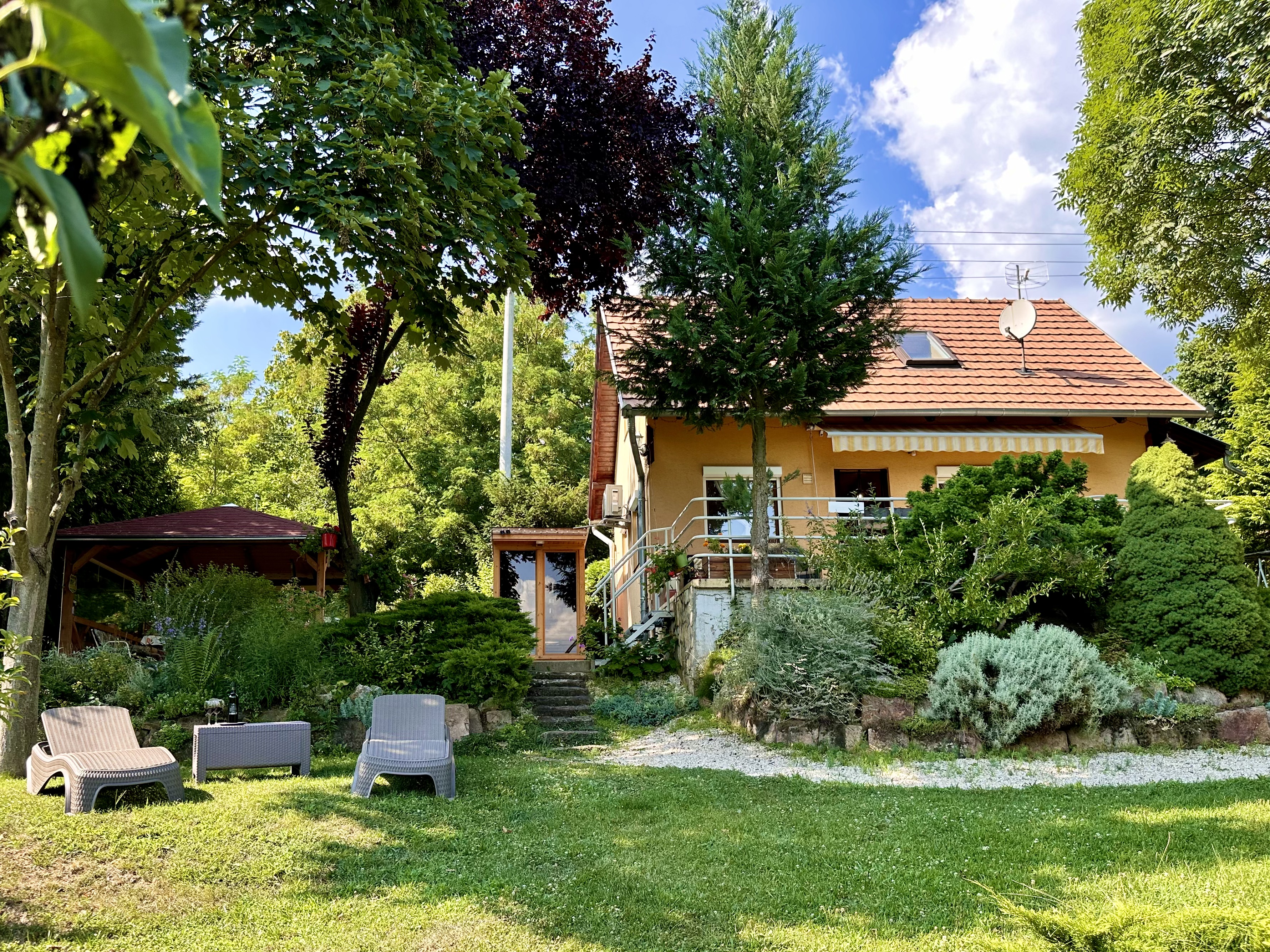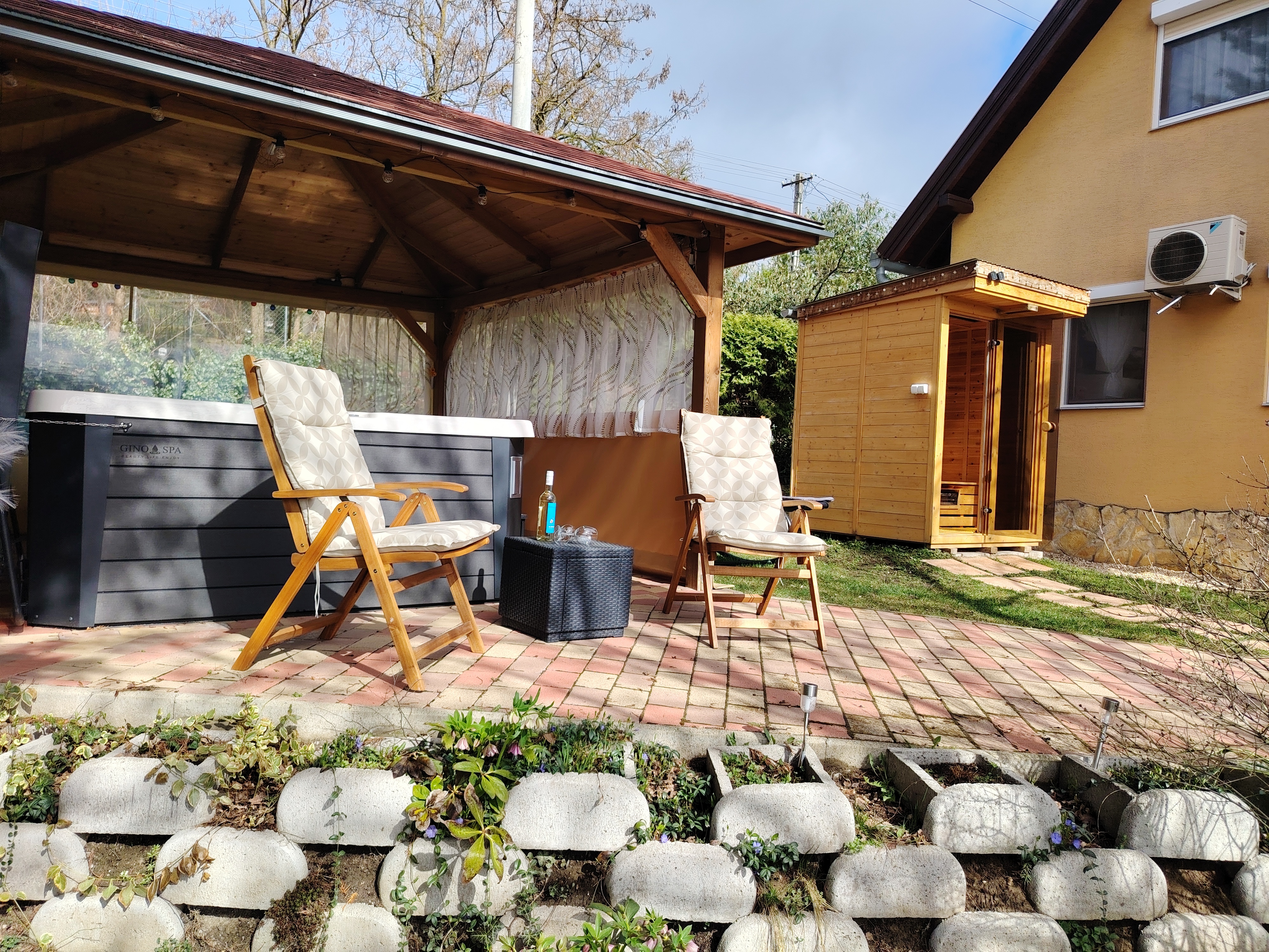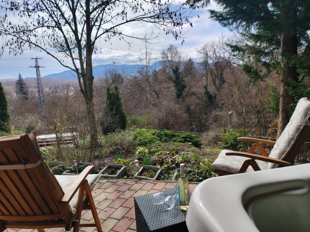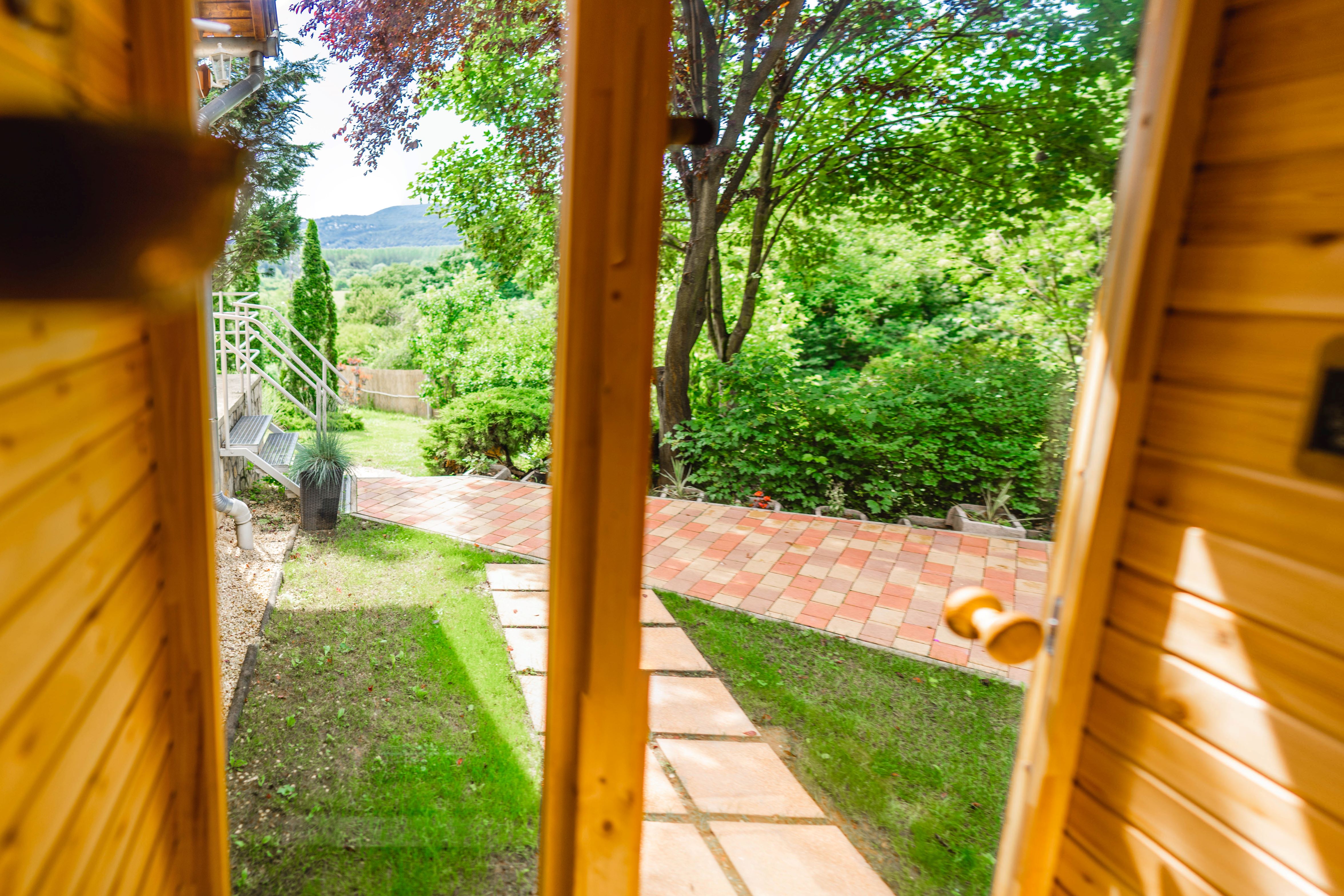 Kerti infra szauna panorámával a szemközti hegyekre