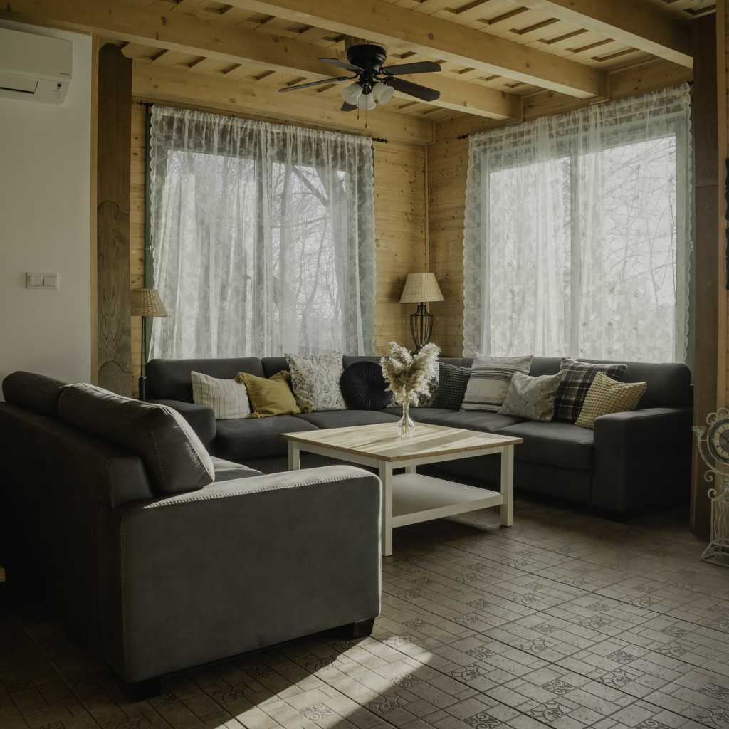 A tágas nappaliban elfér az egész család, hogy egy jó társasozással teljen el az este.