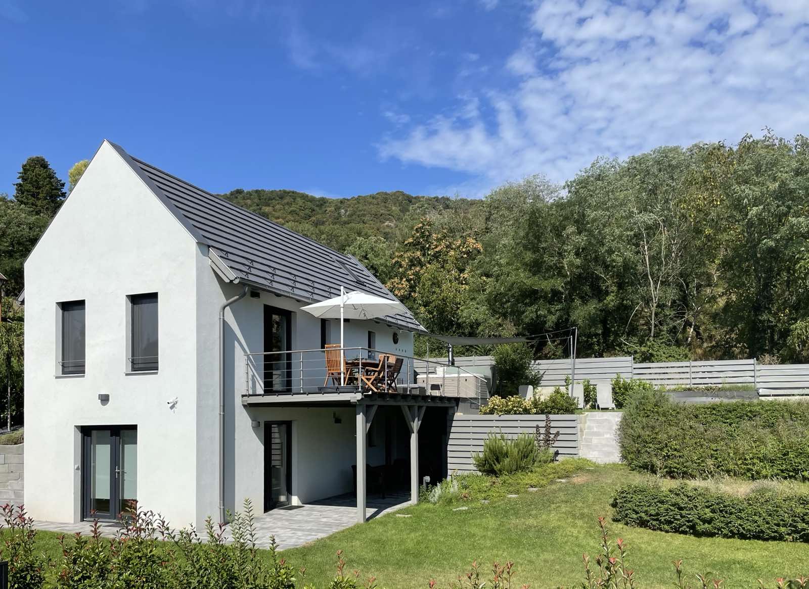 A Badacsony hegy szoknyáján, a Római útról nyíló csendes mellékutcában elhelyezkedő egykori vincellérházat azzal a céllal rekonstruáltuk, hogy a Balaton-felvidéki tájra jellemző, emblematikus formavilággal és stílusjegyekkel azonos, de egy, a mai kor minden igényét kielégítő környezetben tudjuk biztosítani az ide látogatók tökéletes kikapcsolódását.