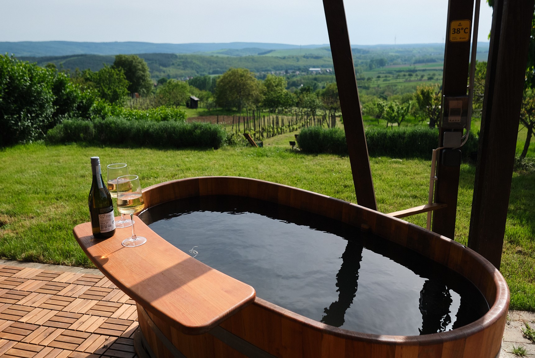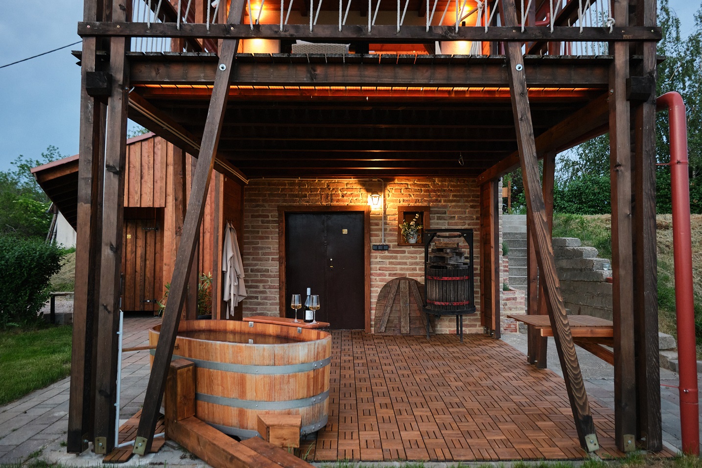 A Pajkos Présház ízig-vérig igazi „tinyhouse”, egy kedves kis házikó két fő részére, ami minden kényelmet megad amire egy néhány napos kuckózás során vágynátok. Fantasztikus bakonyi panorámával, melegvizes fürdődézsával, kandallóval és saját borospincével várunk titeket, ahol kedvetekre kortyolhattok a ház borából. Ez a mi ajándékunk Nektek 🙂