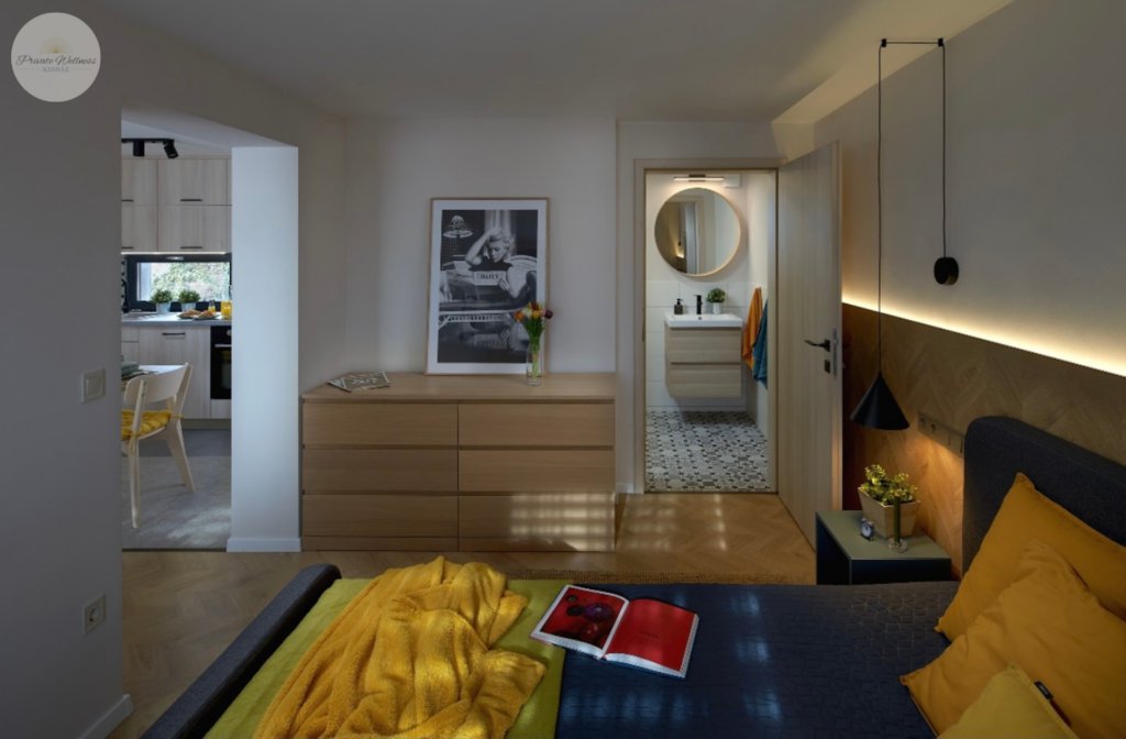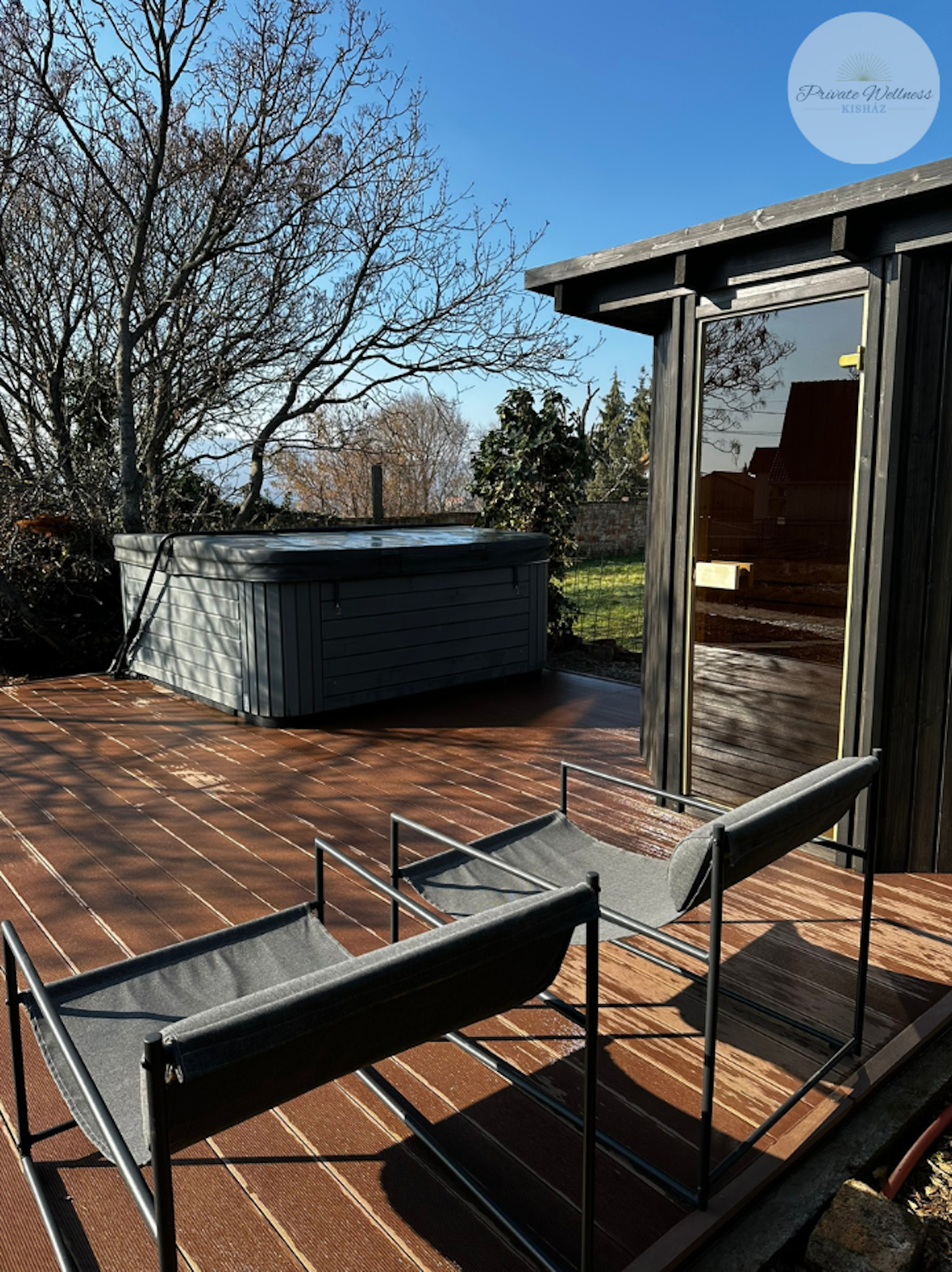 A Private Wellness Kisház tökéletes választás azok számára, akik a nyugalmat és a luxust keresik. A privát jakuzzi és finn szauna garantálja a teljes feltöltődést, míg a modern, 4 csillagos apartmanok prémium kényelmet és kifinomult eleganciát nyújtanak. A saját kert és autóbeálló biztosítja a zavartalan pihenést, míg a teljesen felszerelt konyhák otthonos élményt nyújtanak.