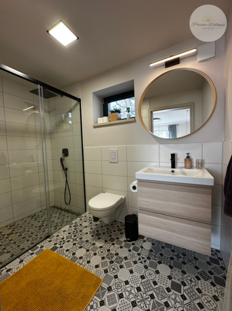 A térkövezett udvarból új építésű, első osztályú összképet sugárzó épülethez érkezünk. A Private Wellness Kisház prémium minőségű berendezéssel és tudatos tervezéssel biztosít első osztályú kényelmet. Az igényes anyaghasználat, a harmonikus kialakítás és a kifogástalan műszaki állapot a luxus és elegancia tökéletes egyensúlyát nyújtja. A padlófűtést termosztatikus mennyezethűtés egészíti ki.
