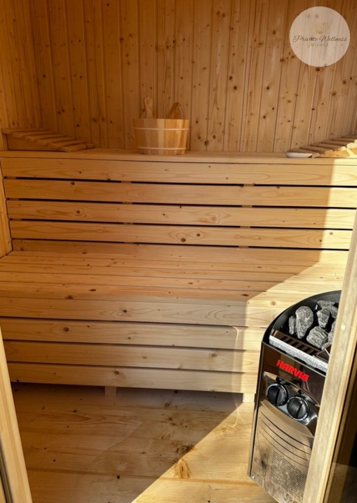 A teljes privát wellness élményt a finn szauna teszi teljessé, amely a mély relaxáció és testi regeneráció tökéletes eszköze. A magas hőmérséklet segíti a méregtelenítést, serkenti a vérkeringést és erősíti az immunrendszert, miközben a természetes faanyagok kellemes, pihentető környezetet teremtenek. A szaunázás nemcsak a fizikai, hanem a mentális feltöltődést is támogatja, így garantált a teljeskörű wellness élmény.