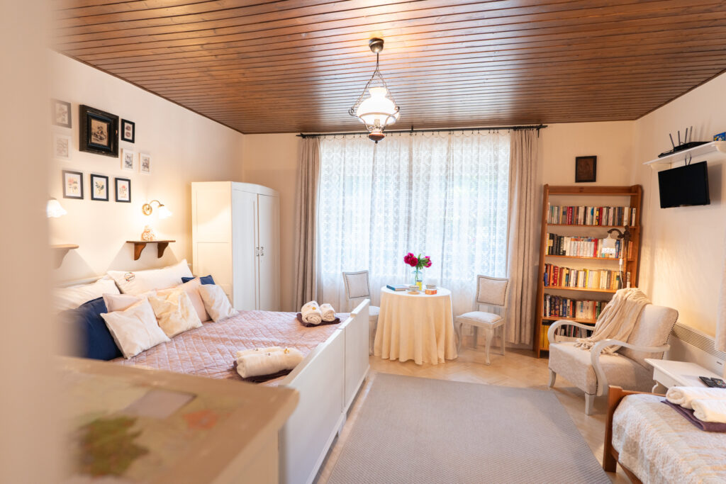 A 100 éves gangos Ribizli vendégházban a 🧡 Bézs (5 fős, pótágyazható) és 💙 Kék (2 fős) önálló apartmanjaink saját fürdővel és konyhával teljes függetlenséget biztosítanak. 4 fős jacuzzi és külső konyha is rendelkezésre áll a nagy fedett teraszon. A Dédnagypapám által épített házat az elmúlt években teljesen korszerűsítettük megtartva hagyományos értékeit. A kertet számlatan virágzó évelővel, sziklakertekkel, örökzöldekkel hívtuk újra életre.
