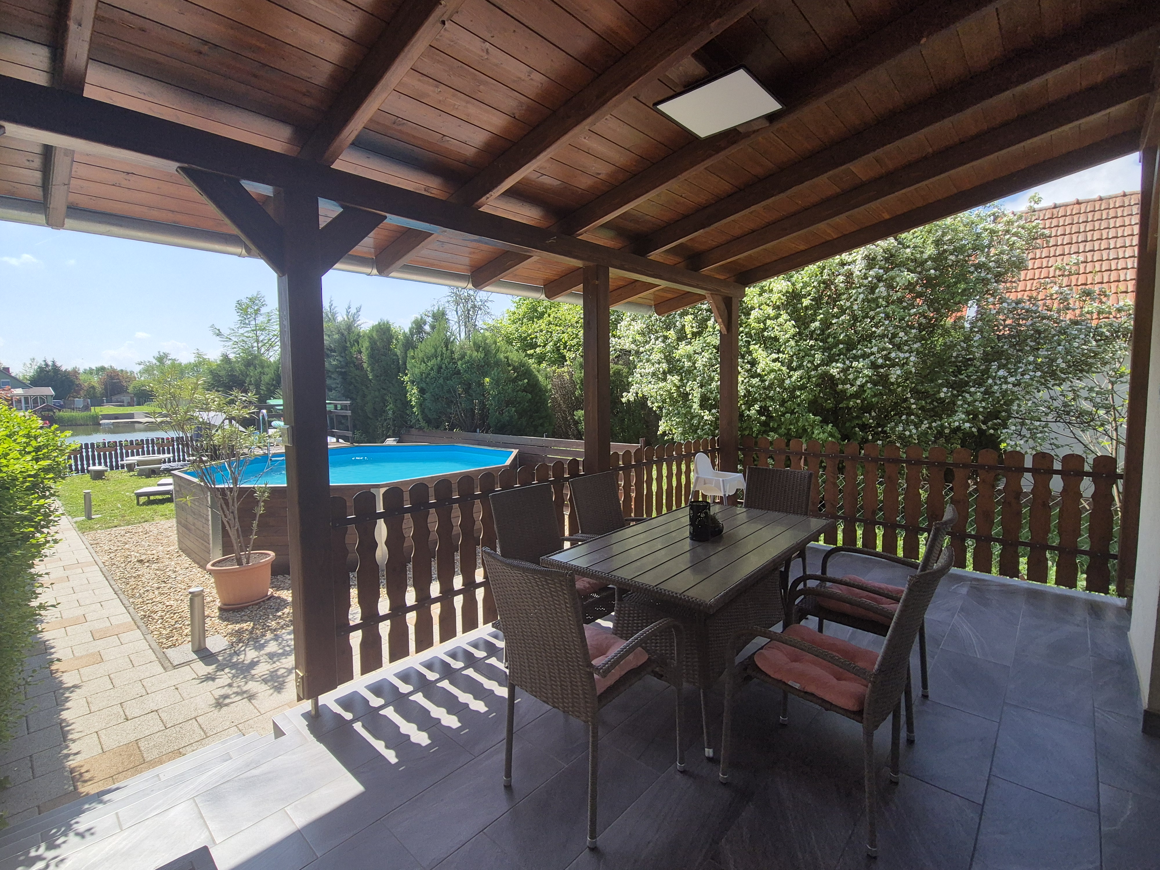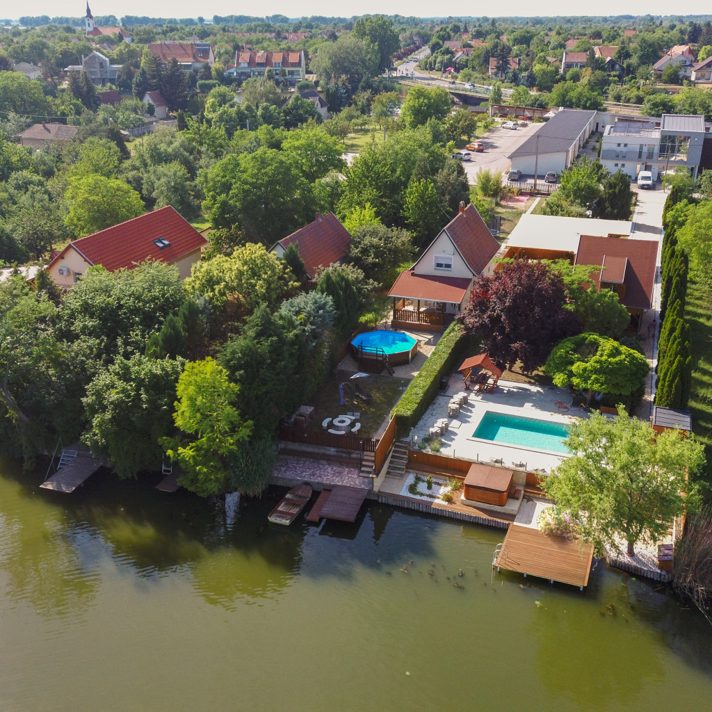 Családoknak ideális 6 személyes nyaraló kiadó saját vízparttal,mólóval,stéggel Békésszentandráson.
