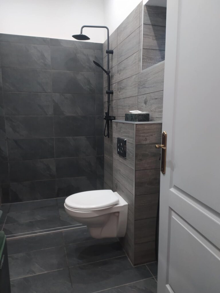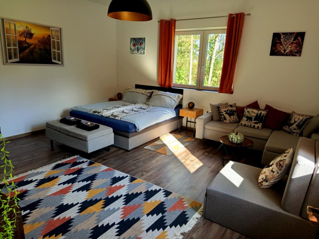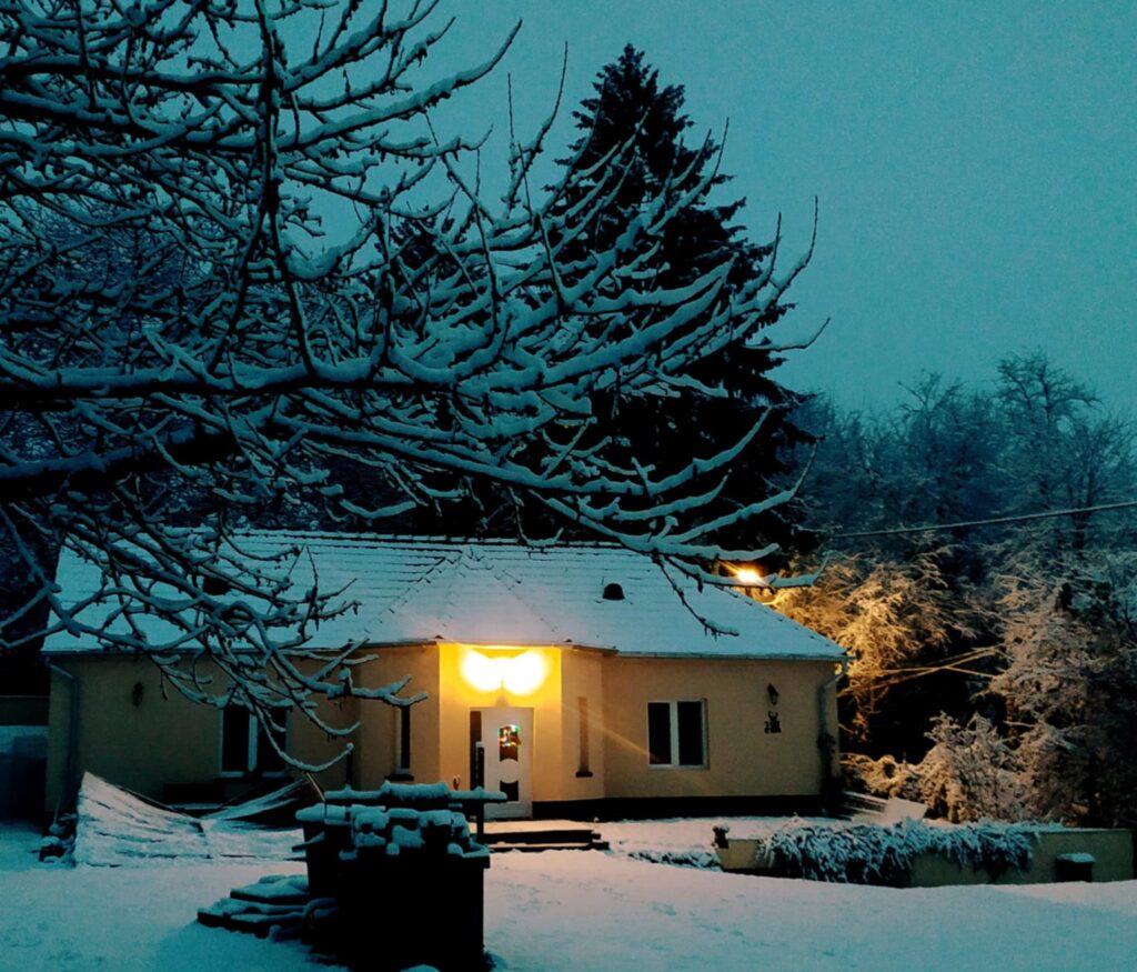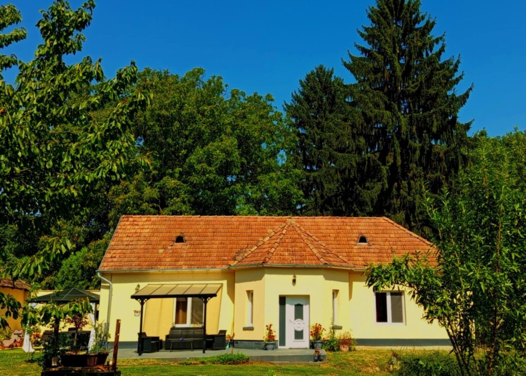 A több mint 150 éves svábházat a modern igényekhez igazodva, de az egyes rusztikus elemeit megtartva alakítottuk ki. Az étkező konyha egyik fala az eredeti rakott tégla, míg a kis háló mennyezeti gerendái is az eredetiek, milesi lazúrral védve a fát, hogy még legalább ugyanennyi ideig tehesse a dolgát. A házban két wc-s fürdőszoba is kialakításra került, ami eddig is nagy siker volt visszatérő vendégeink körében. Hűtő/fűtő légcsatornás rendszerünk környezettudatos, tiszta és rendkívül kényelmes, szinte láthatatlan. Mindkét szoba smart TV-vel felszerelt. Az ingyenes wifi, a mindennel felszerelt konyha, a kávé és tea bekészítés is nagy kedvenc a vendégek között. 2025 decemberétől már egy szauna is rendelkezésre áll.