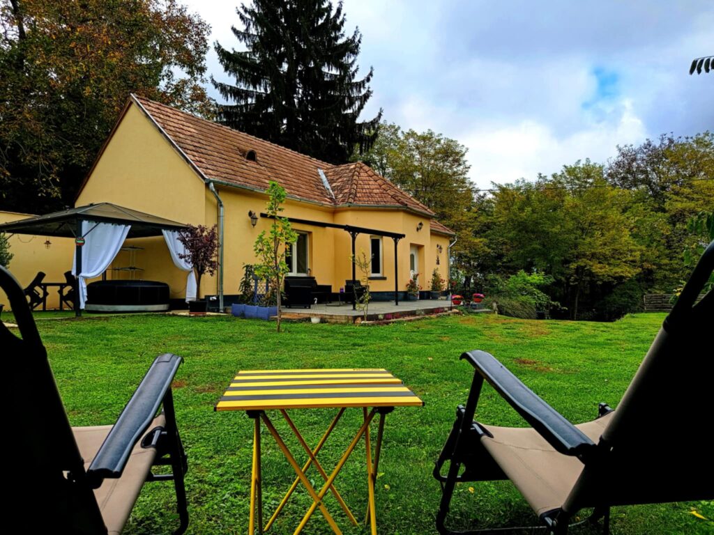 4+3 fős erdőszéli házikónk a Zala termálvölgyében fekszik. A termálfürdők, borászatok, várak, templomok, mellett az egyszerűbb, kezdőknek való kiránduló és a „combosabb” túrákat kedvelő útvonalak szerelmesei is megtalálják a számításukat nálunk. A ház a zalai dombok ölelésében fekszik, így nyáron is kellmes mikro klímával rendelkezik. A közelben egy kis bányató is található, ahol a kutya úsztatás és a pecázás egyaránt lehetséges. 2400nm-es, teljesen körbekerített privát kertünkben egy kis agility pályát is felállítottunk, de van több kiülő, terasz, napozó terasz ahol egy jacuzzi is helyet kapott. Több étterem is szállít ki hozzánk, de vannak közeli éttermek, sőt látogatható családi borászatok is.