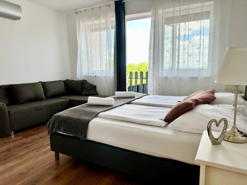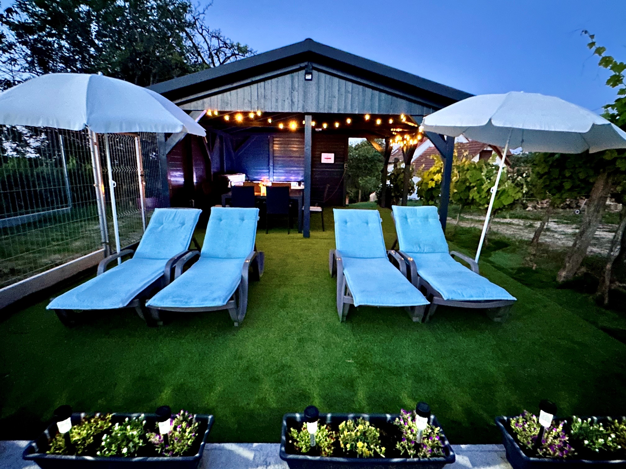 Szőlőhegyi panoráma, madárcsicsergés, romantikus napfelkelte és naplemente – 2024-ben megújult kutyabarát apartmanok – kerti kiülő korlátlanul használható jacuzzival, napozóval – kutyafuttató kutyakennellel – bográcsozási és grillezési lehetőség