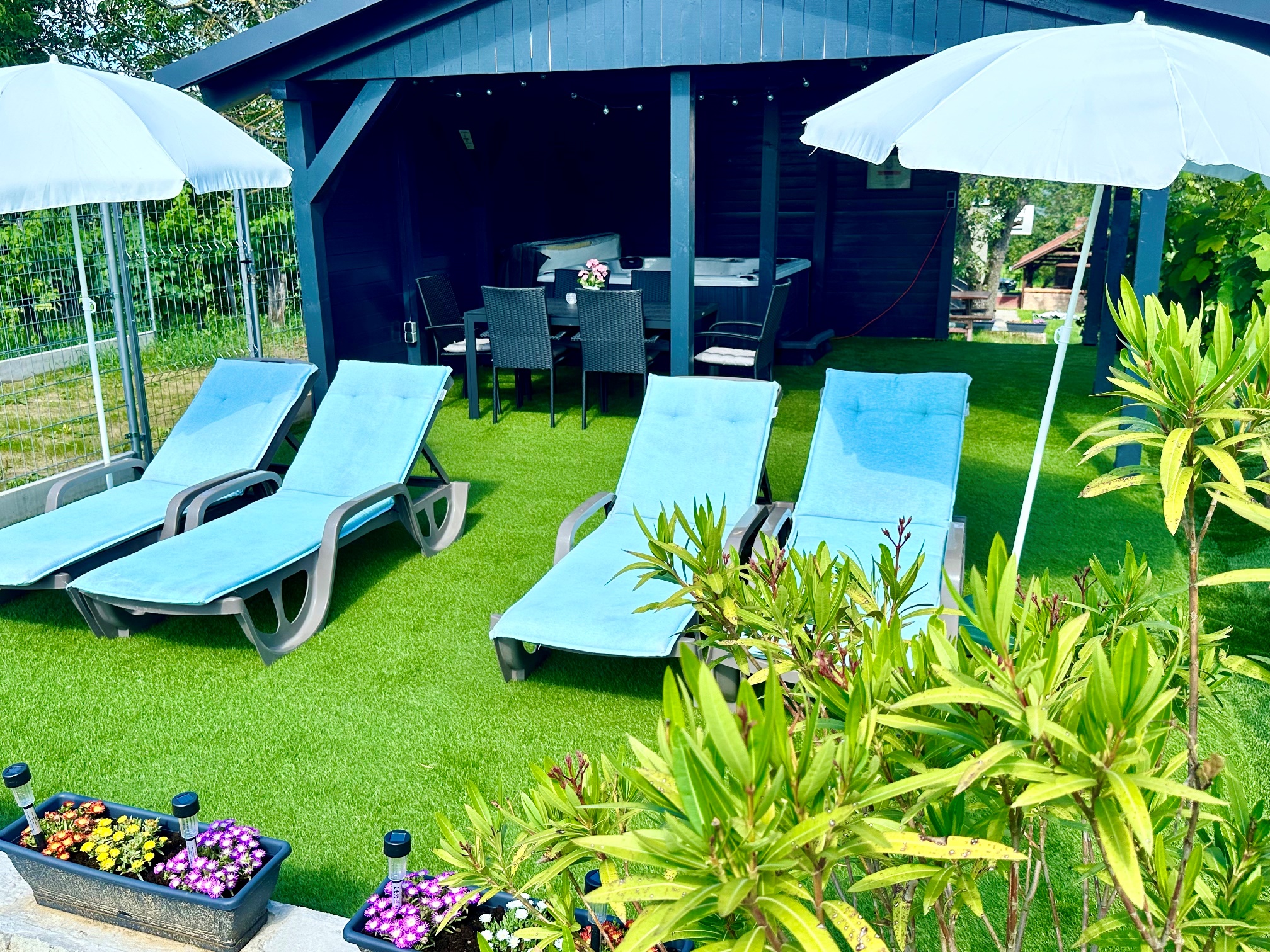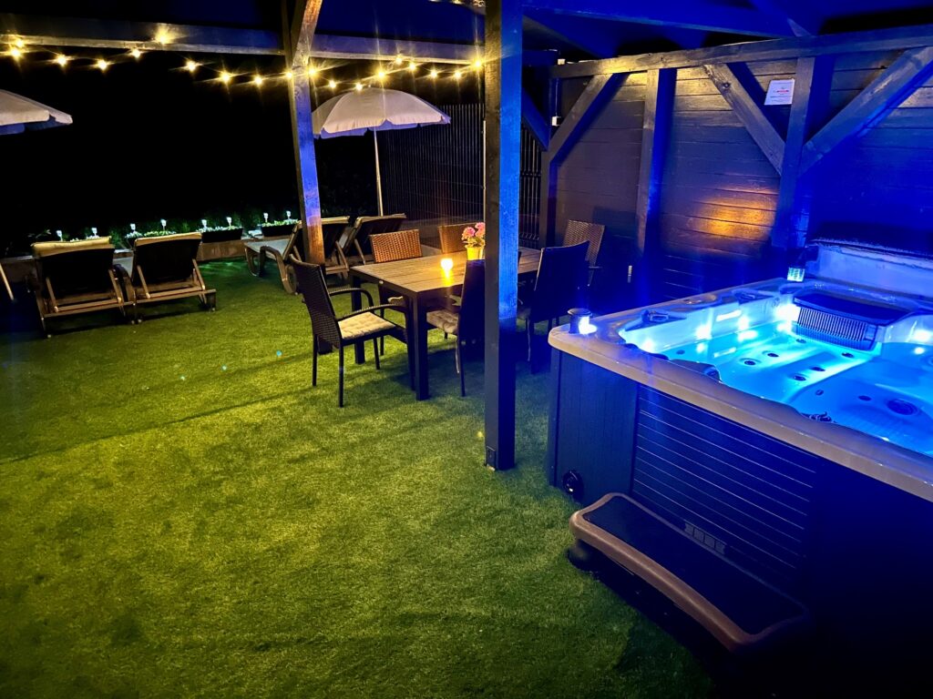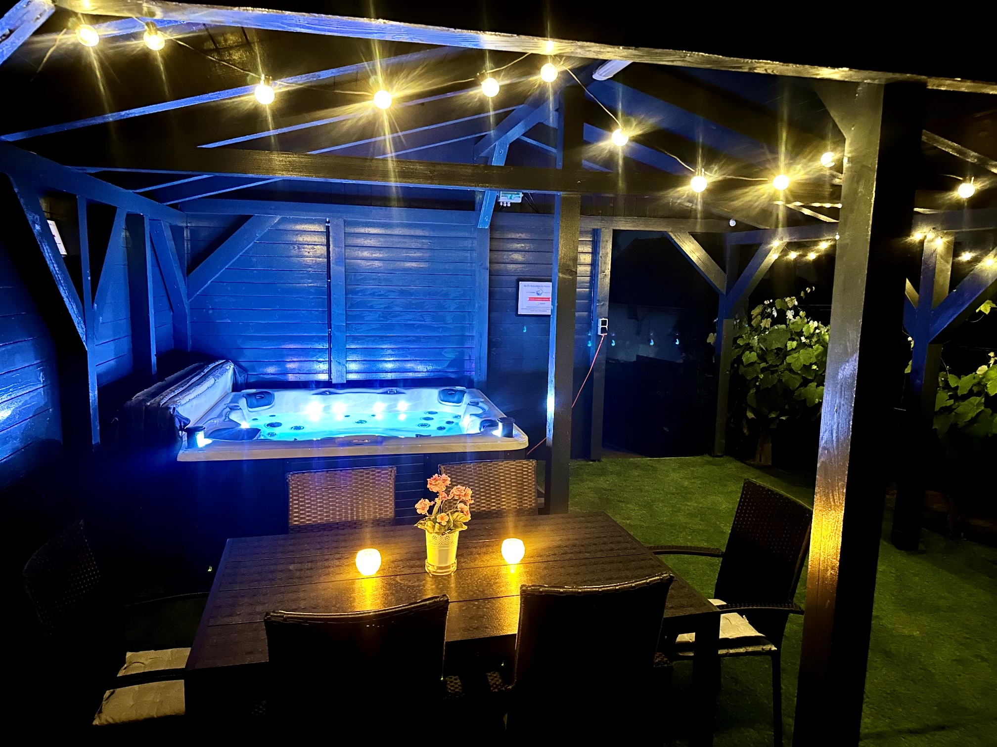 A hatalmas zöld udvaron, a panzió mögött kerti kiülő található korlátlanul használható jacuzzival. Bográcsozási és grillezési lehetőség is rendelkezésetekre áll, tűzifával. Árnyékos kutyafuttató kutyakennellel, hogy kutyusotokat is biztonságban tudjátok, ha esetleg néküle terveztek programot.