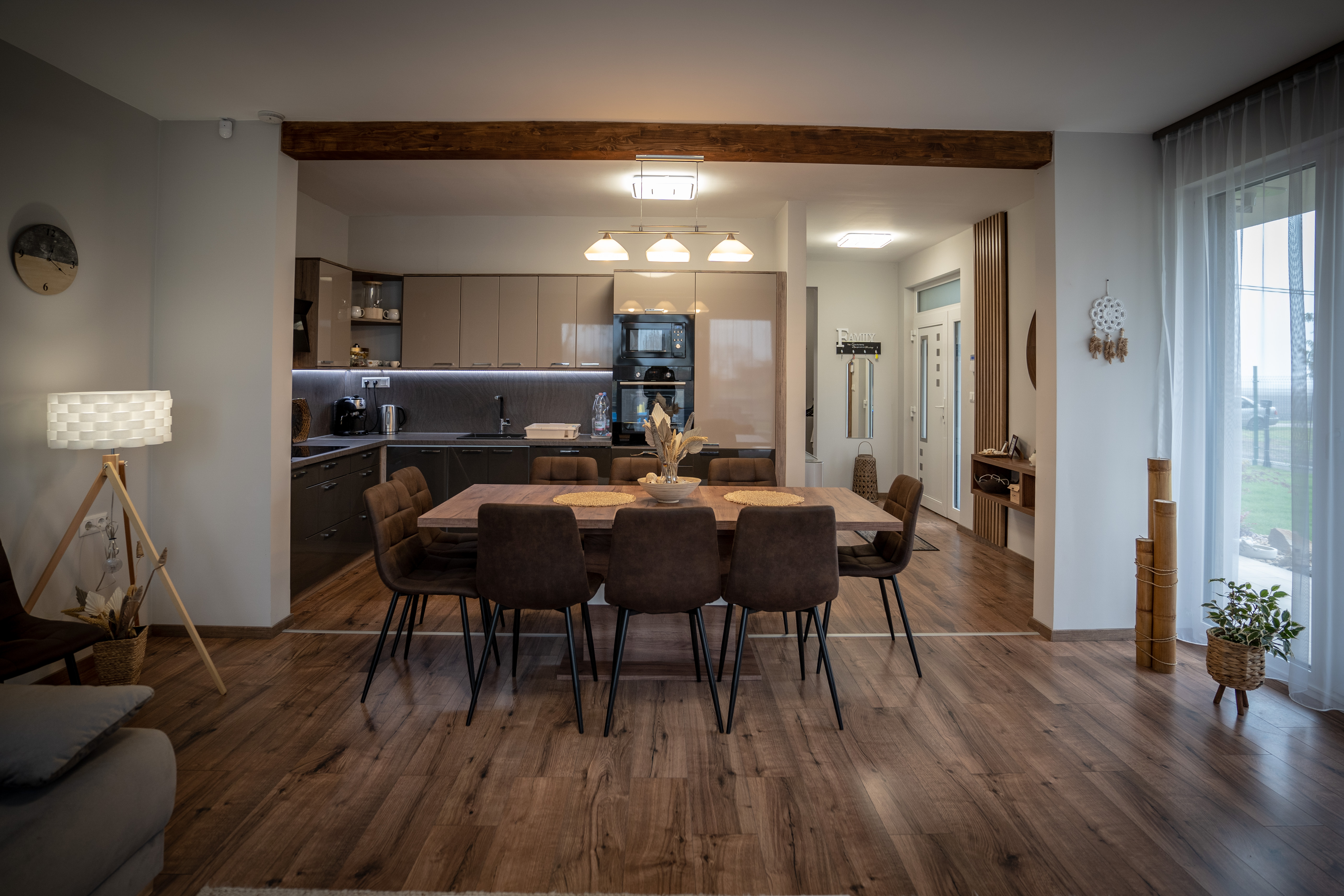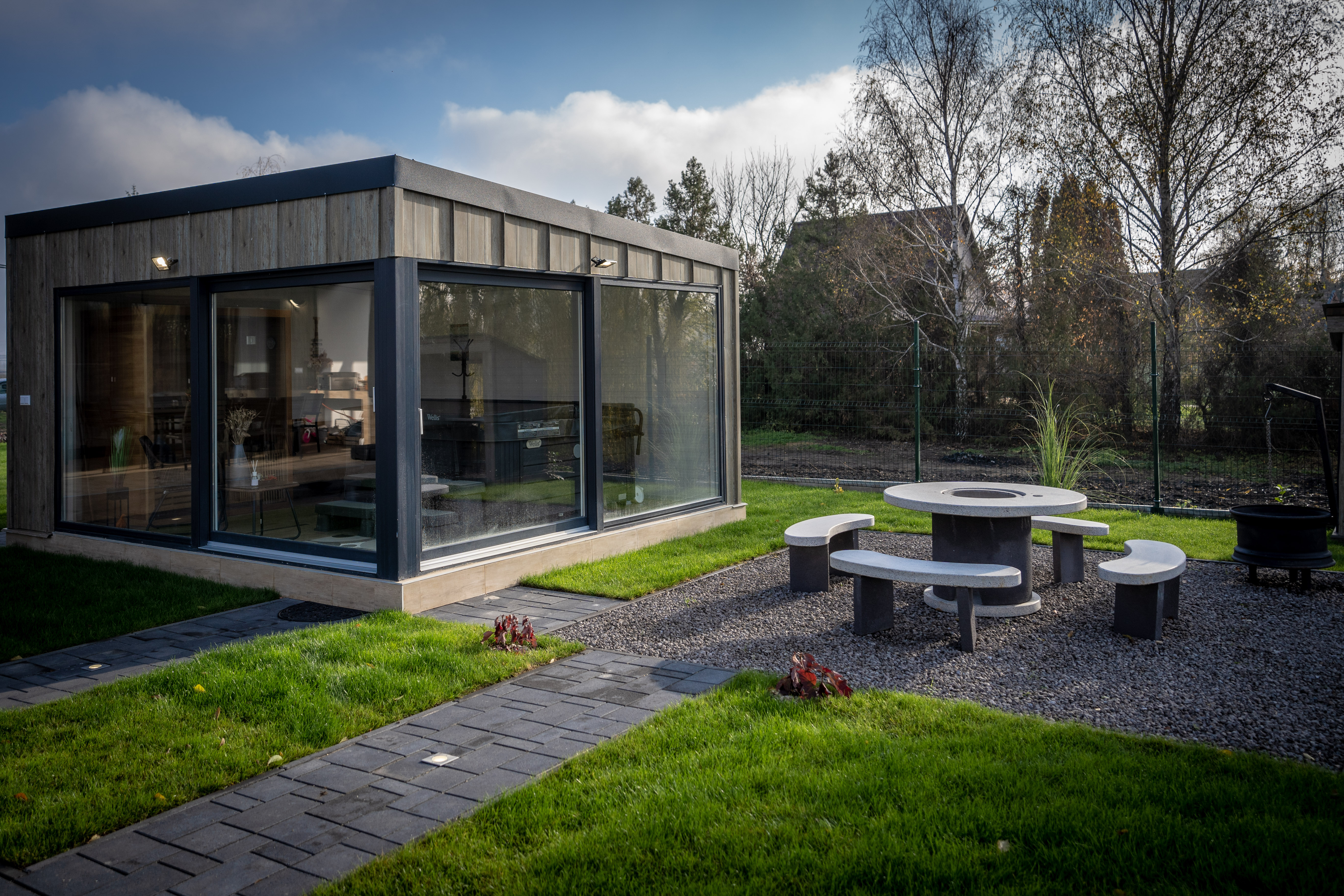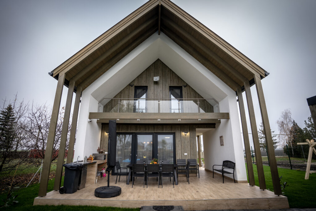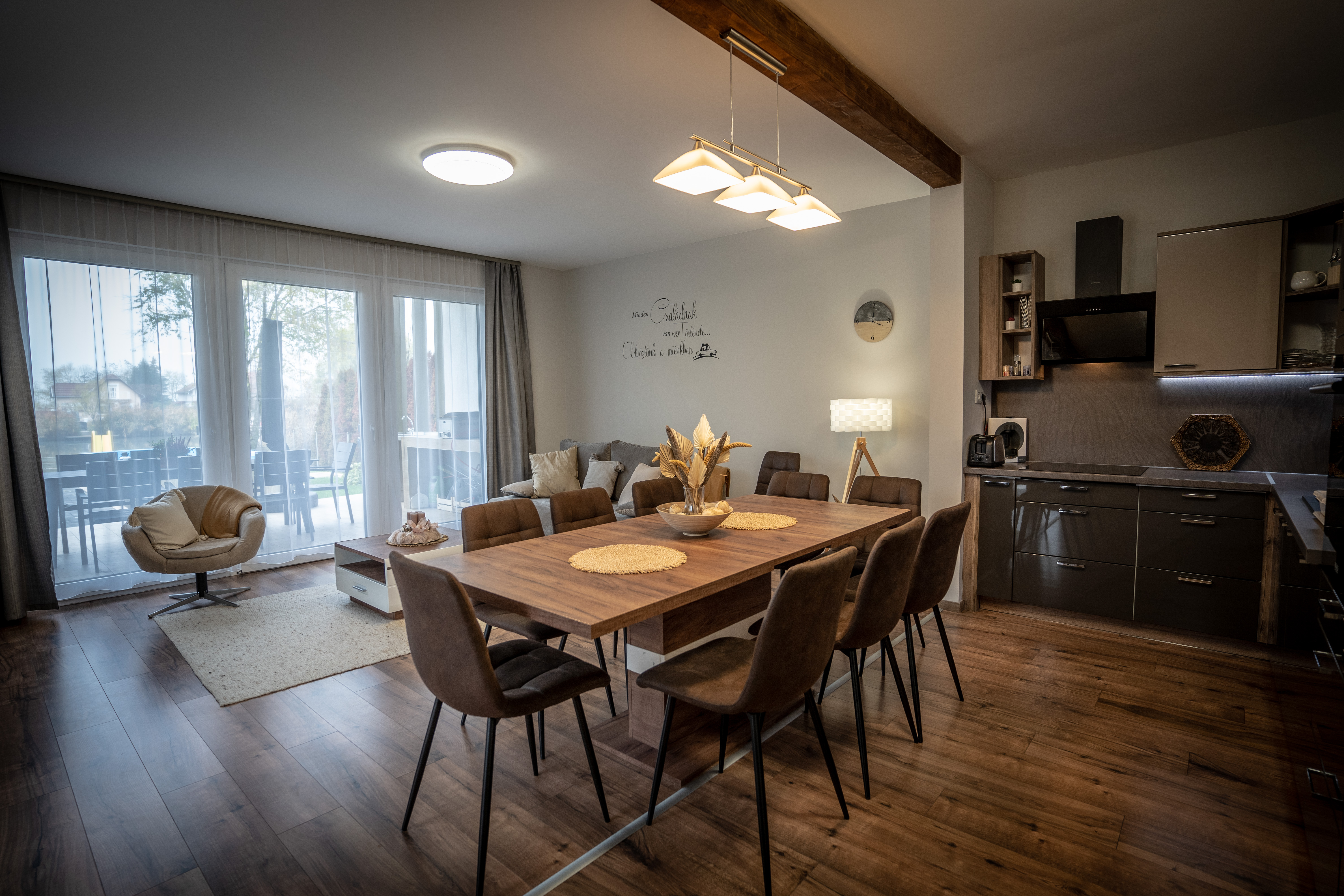 A tágas teraszon 8 személyes kerti étkező pedig a szabadtéri étkezés, kártyaparty kiváló színtere, és itt került még kialakításra a kinti konyha, ahol a finom grillételek tudnak készülni
