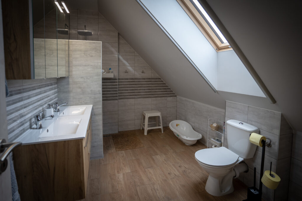 A nyaraló felső szintjére érve egy szintén tágas és világos nappaliból nyílik 3 különálló nappali, melyből 2 szintén Körös néző panorámával rendelkezik, illetve Vendégeink komfortzónájának megfelelően egy felső szinti zuhanyzós fürdőszoba mosdóval egyben.
