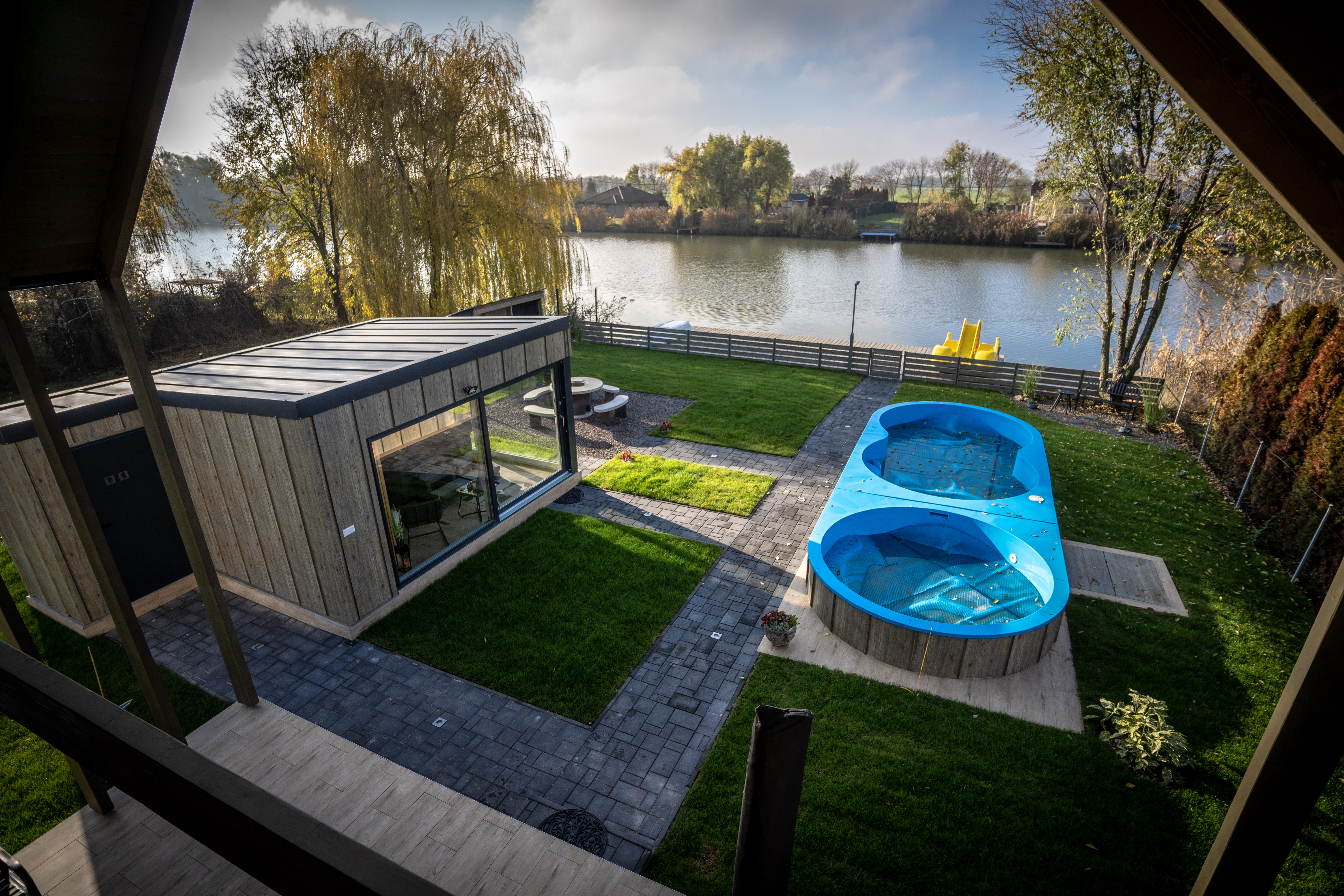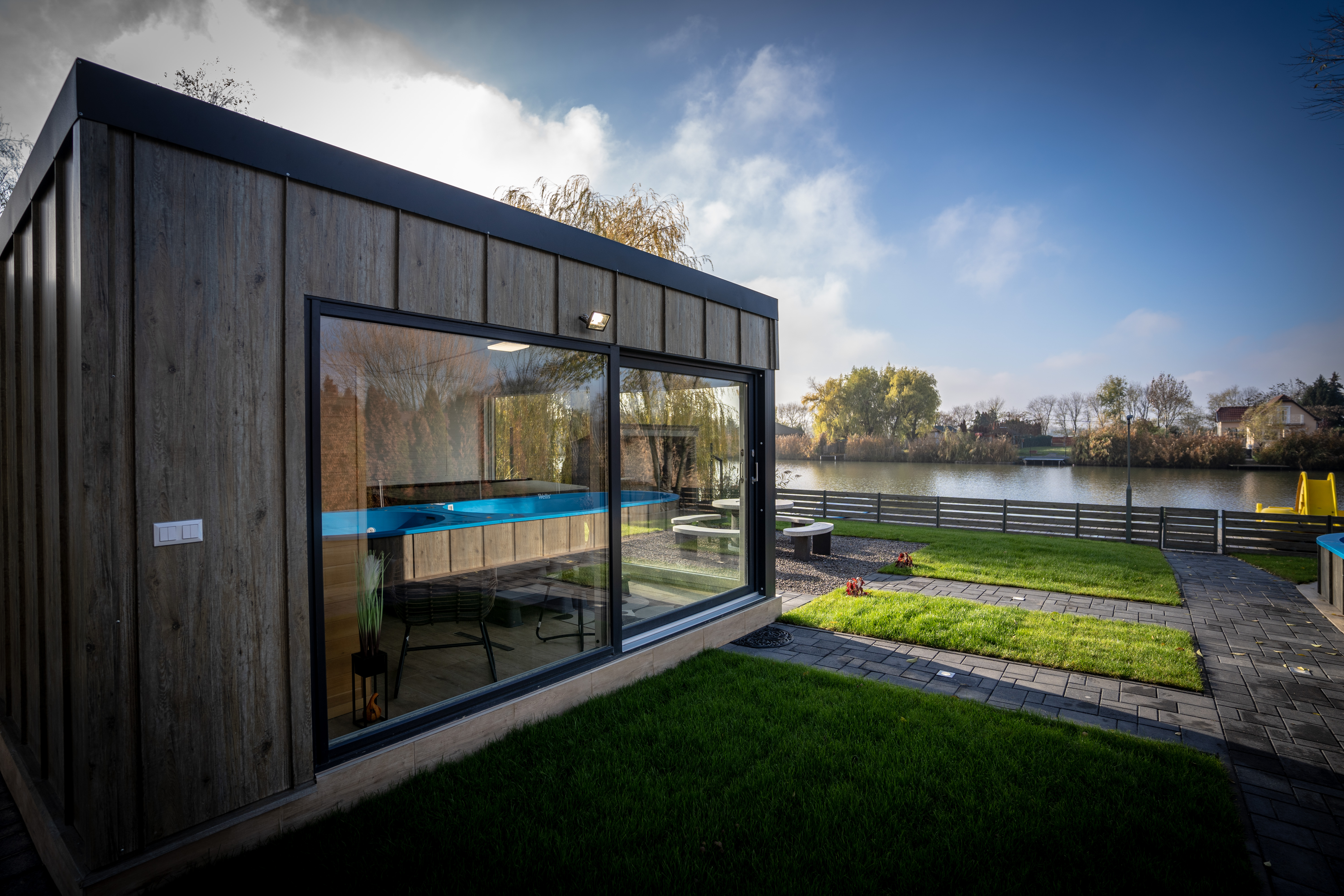 Körösre néző 6*3 méretű medence és gyerekpancsoló valamint a külön wellnessházban kialakított fűthető jakuzzi és finn szauna kiváló élményt biztosít Vendégeink részére!