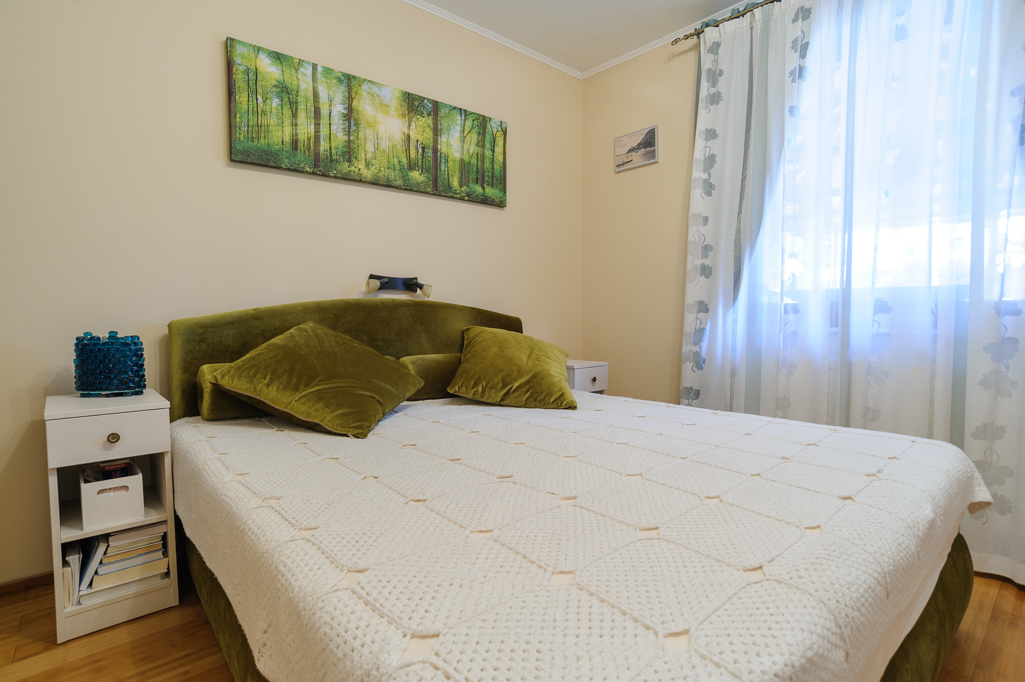 – 4 hálószoba – 8 férőhellyel (+1 kinyitható teljes értékű ágy, igény esetén rácsos babaágy, babakád, etetőszék)