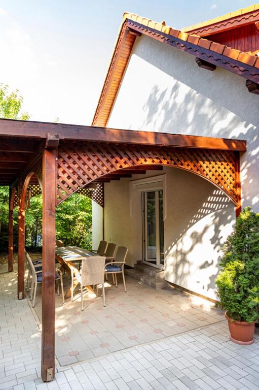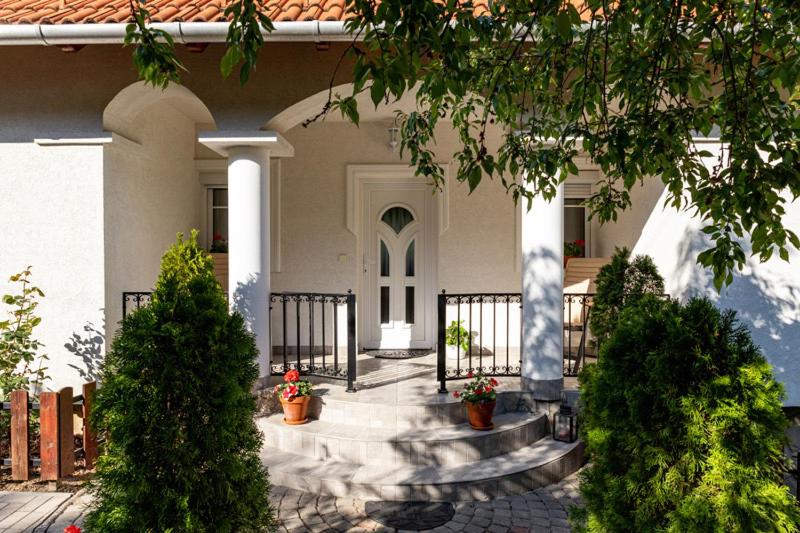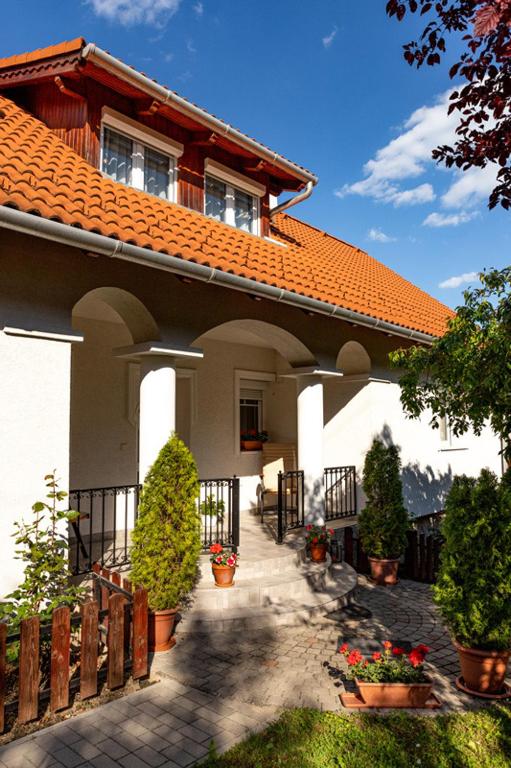 Balatonalmádi központjában, mégis csendes környezetben egy zsákutca végében található a két szintes, gyönyörű balatoni panorámás ház. A vendégház 6-10 fő részére biztosít kellemes pihenési lehetőséget. A parkosított kertben grillezési és bográcsozási lehetőség biztosított, de kérjük a nyugalmas környezetet az éjszakai órákban ne zavarják. A garázsban és a garázs előtt két-két autó számára megoldott a parkolási lehetőség. Korlátlan dázsafürdő és finn szauna használat áll Vendégeink rendelkezésére.