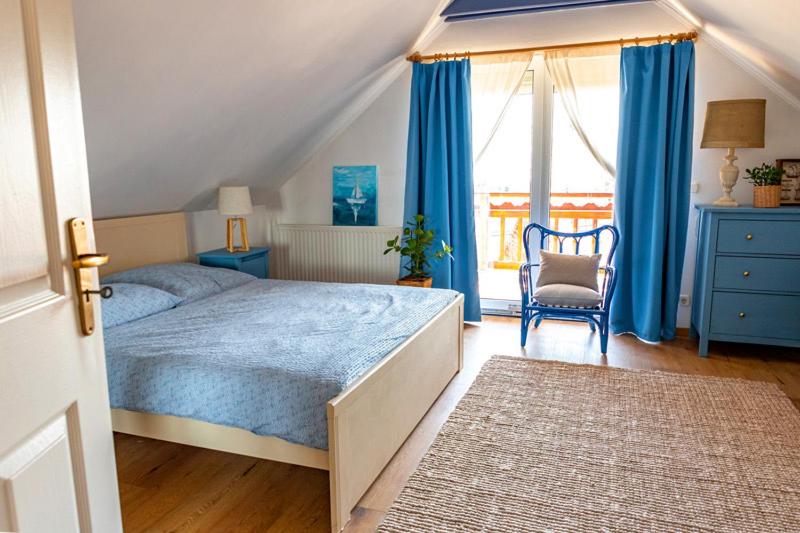 Balatonalmádi központjában, mégis csendes környezetben egy zsákutca végében található a két szintes, gyönyörű balatoni panorámás ház. A vendégház 6-10 fő részére biztosít kellemes pihenési lehetőséget. A parkosított kertben grillezési és bográcsozási lehetőség biztosított, de kérjük a nyugalmas környezetet az éjszakai órákban ne zavarják. A garázsban és a garázs előtt két-két autó számára megoldott a parkolási lehetőség.
