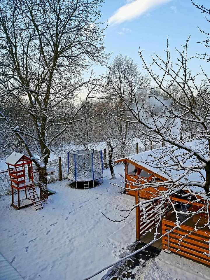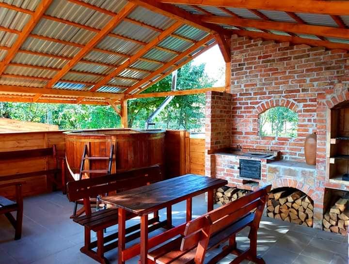 Hatalmas fedett kerti konyha, grillezési, sütési, bográcsozási lehetőséggel. Fűthető, zárt, téliesített terasz, közösségi tér. Gyermekeknek nagy játszótér, csúszda, trambulin.
